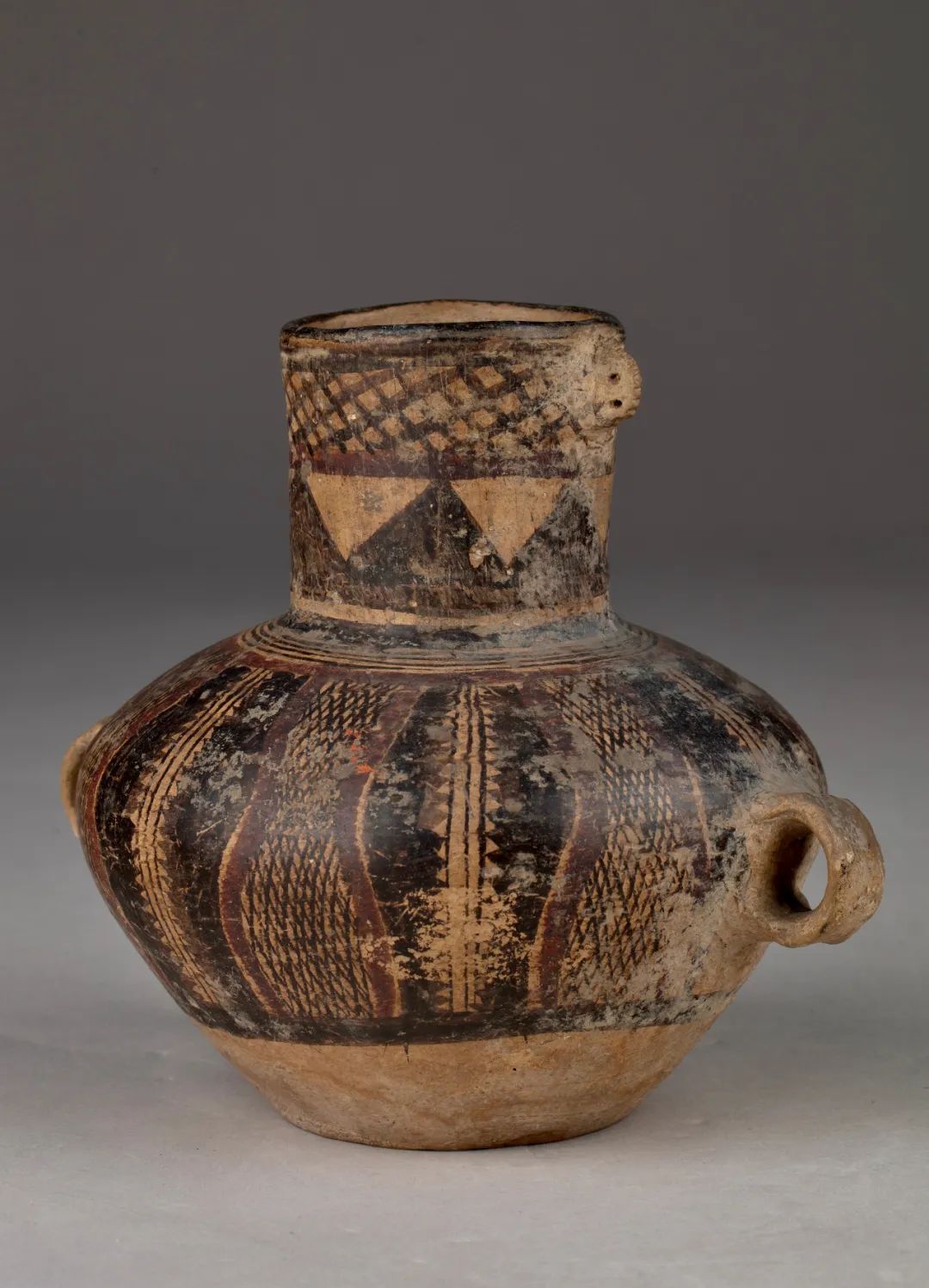 在新石器时代,先民常将他们眼中的世界抽象化、艺术化,或在几何图案中发现规律,或在自然界中寻找灵感,并将其描绘在日常使用的陶器上面。在这种红与黑、虚与实、繁与简、抽象与具象的艺术表现里,隐藏着先民神秘的精神世界。