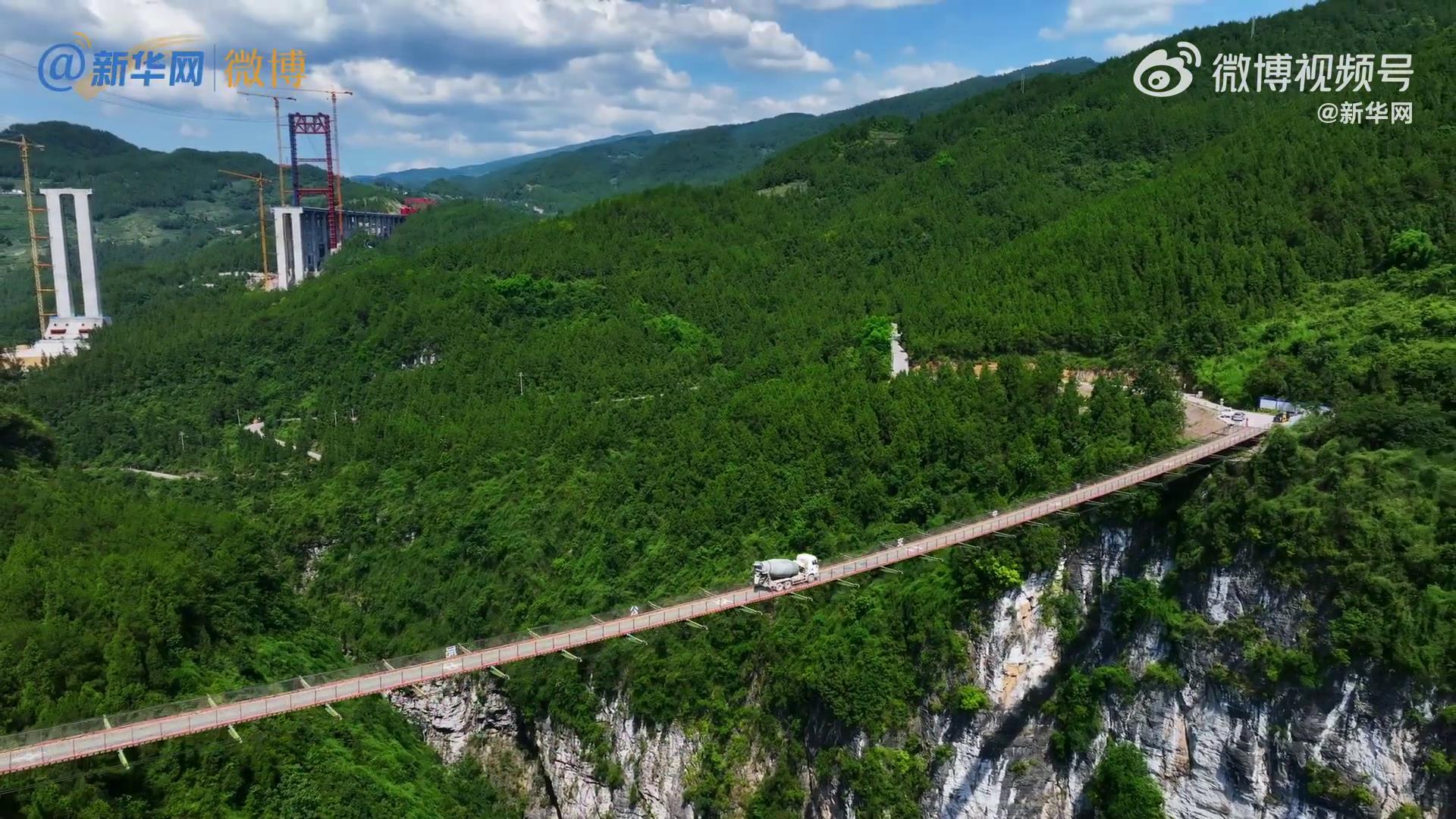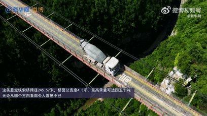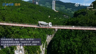 在300米的高空,给你一辆车,你敢开吗?在渝湘高速重庆武隆段“双堡特大桥”建设现场,施工队在300米高空修建了一座悬空施工便桥。