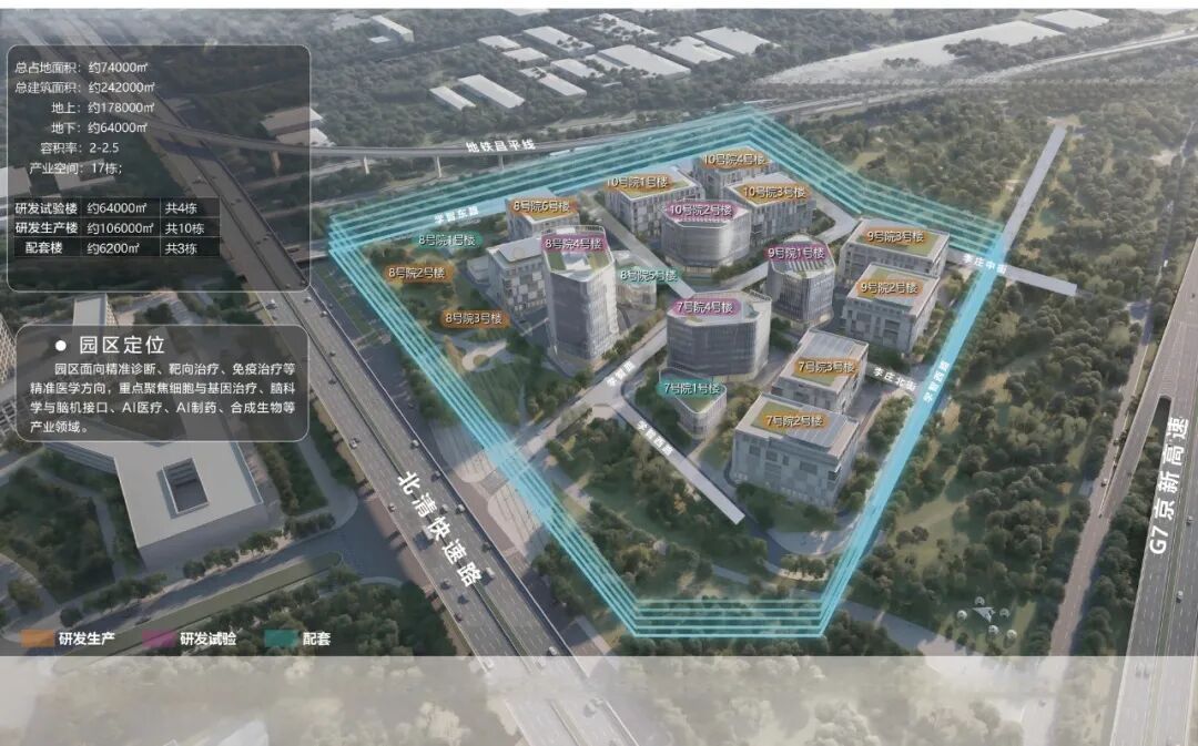 地处中关村生命科学园三期首发核心地块,北清路、京张铁路与京新高速三路环绕,生命谷国际精准医学产业园的区位优势不言而喻。