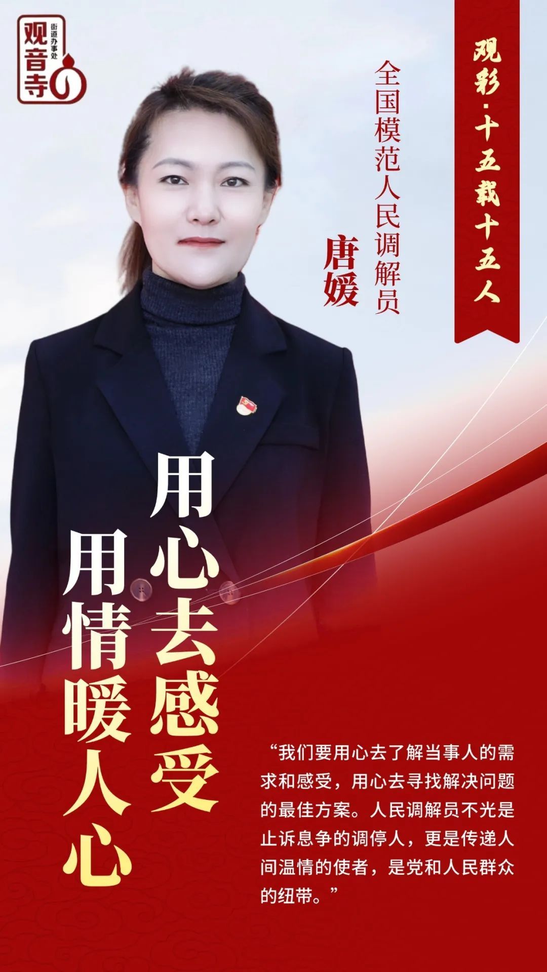 通过一次次调解,收获一份份真情,唐媛甘愿继续“沉迷”家长里短 巧解“千千”结,带动更多人参与到社区和谐共建中,书写观音寺的和美篇章。