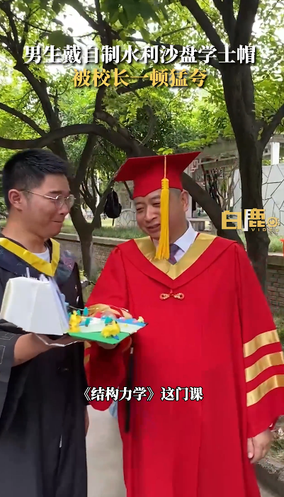 “水利沙盘学士帽”与校长合影