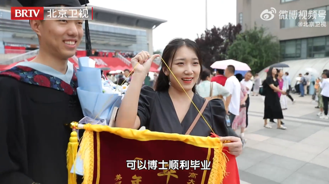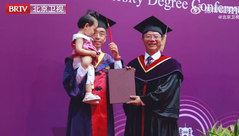 有的博士毕业生抱着自己的小孩
