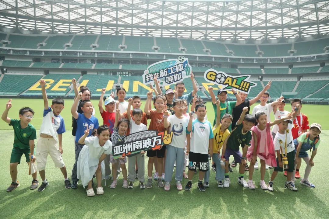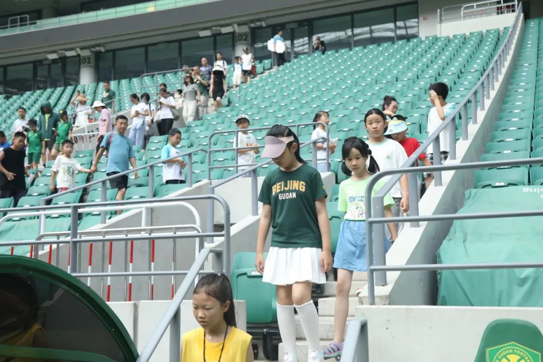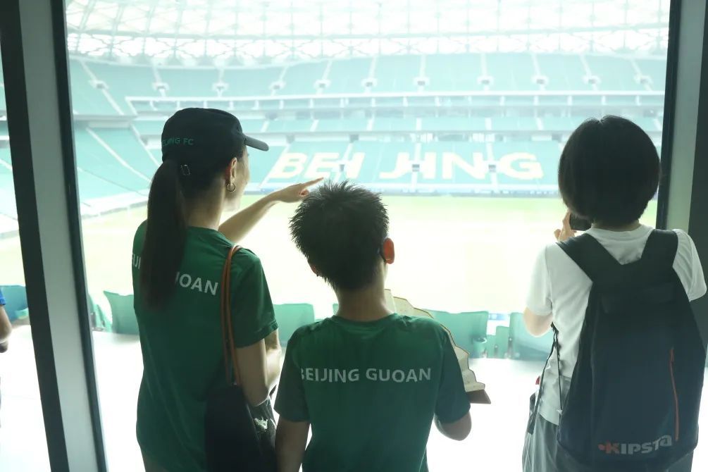在比赛看台,6.8万张“国槐绿”座椅尽收眼底,孩子们面对着标志北京足球俱乐部的“BEIJING FC”字样,感受着这座宏大的体育场馆所带来的冲击与震撼。