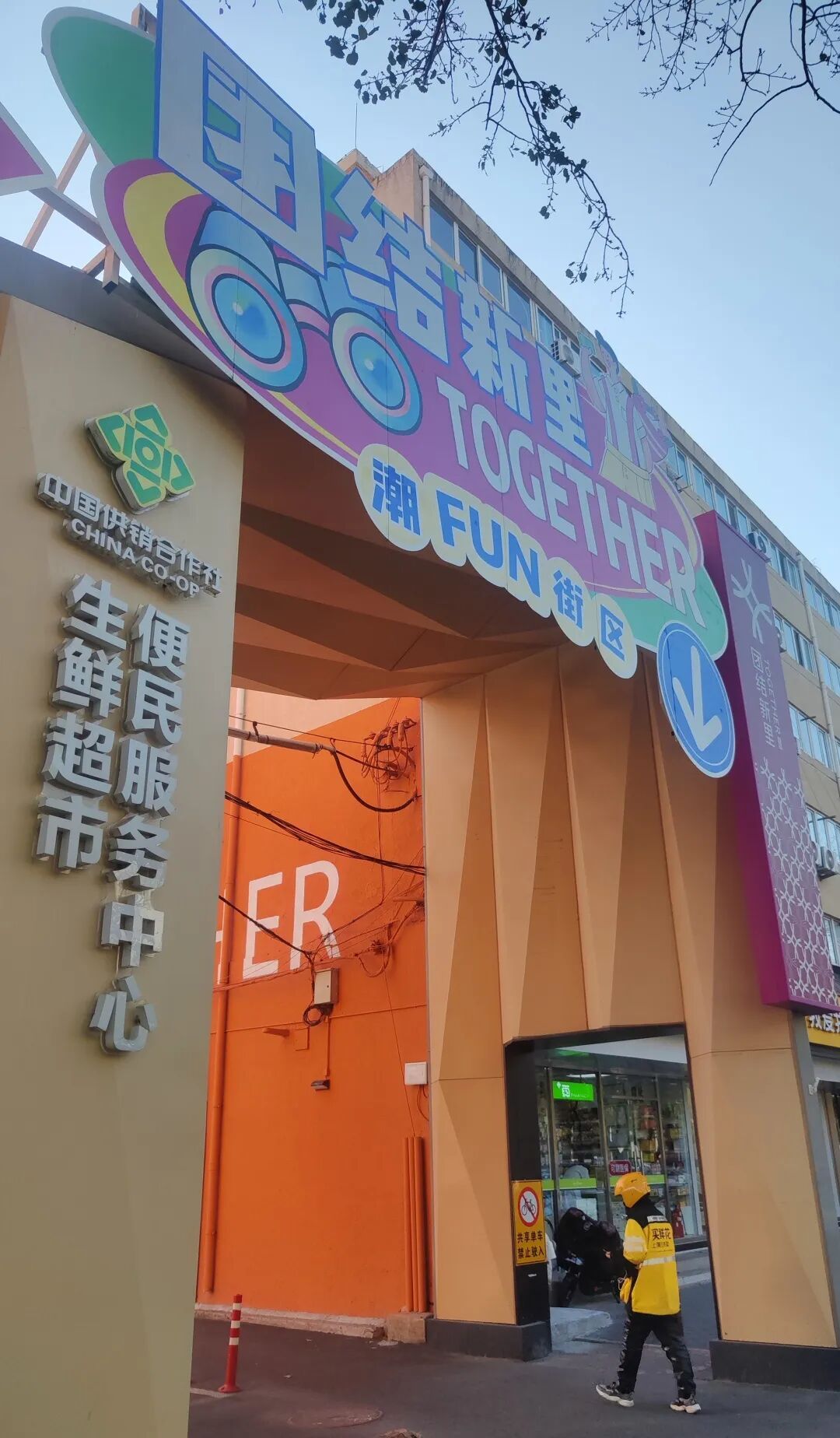 “团结新里”,由原天宇市场改造升级而来,是团结湖地区于2024年建成的一处潮流文化综合体。整体以工业风、赛博朋克风为主,搭配大面积涂鸦墙体,在一片老居民楼中显得格外醒目,成为社区中的一抹“潮流插曲”。这里聚集了烤肉店、潮玩店、咖啡馆等多种业态,融合餐饮、艺术与休闲娱乐。
