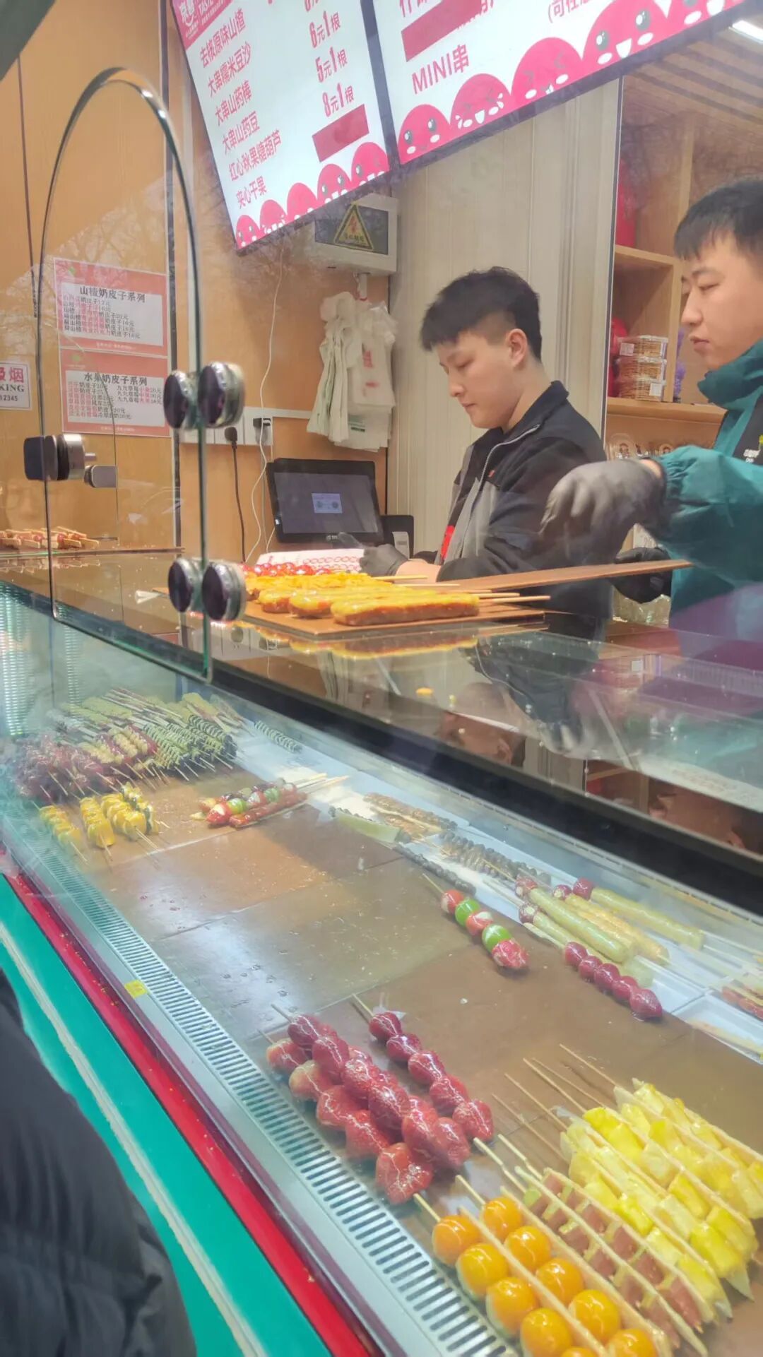排队的顾客往往会在柜台前犯起“选择困难症”——红的、黄的、绿的,到底选哪一串,常常要纠结好一会儿。不少年轻人拿到糖葫芦后的第一件事就是先掏出手机拍照。后面的顾客则不自觉地伸长脖子,现场把“翘首以盼”四个字演绎得格外生动。