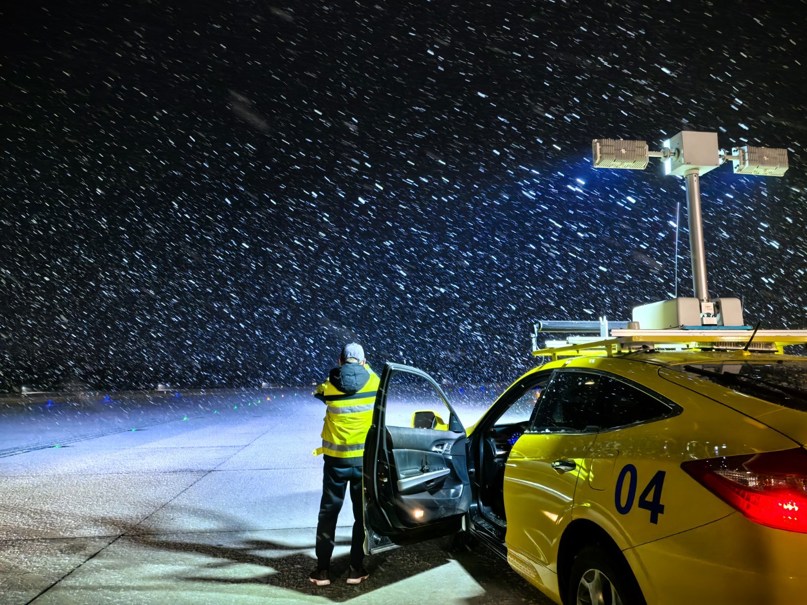 首都机场场道管理巡查员对跑道摩擦系数进行检测。李德军 拍摄