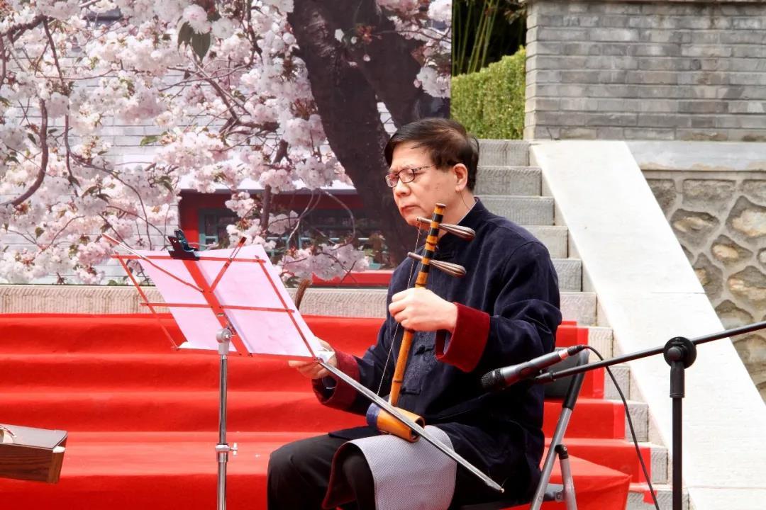 众多艺术家们围绕国学经典传承,为现场观众带来了汇集琴、舞、书、画、禅于一体的樱花季国学雅集。
