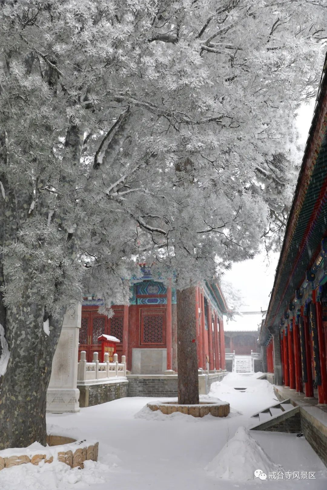 千年古刹潭柘寺、戒台寺景区今日恢复开园,附雪景图。