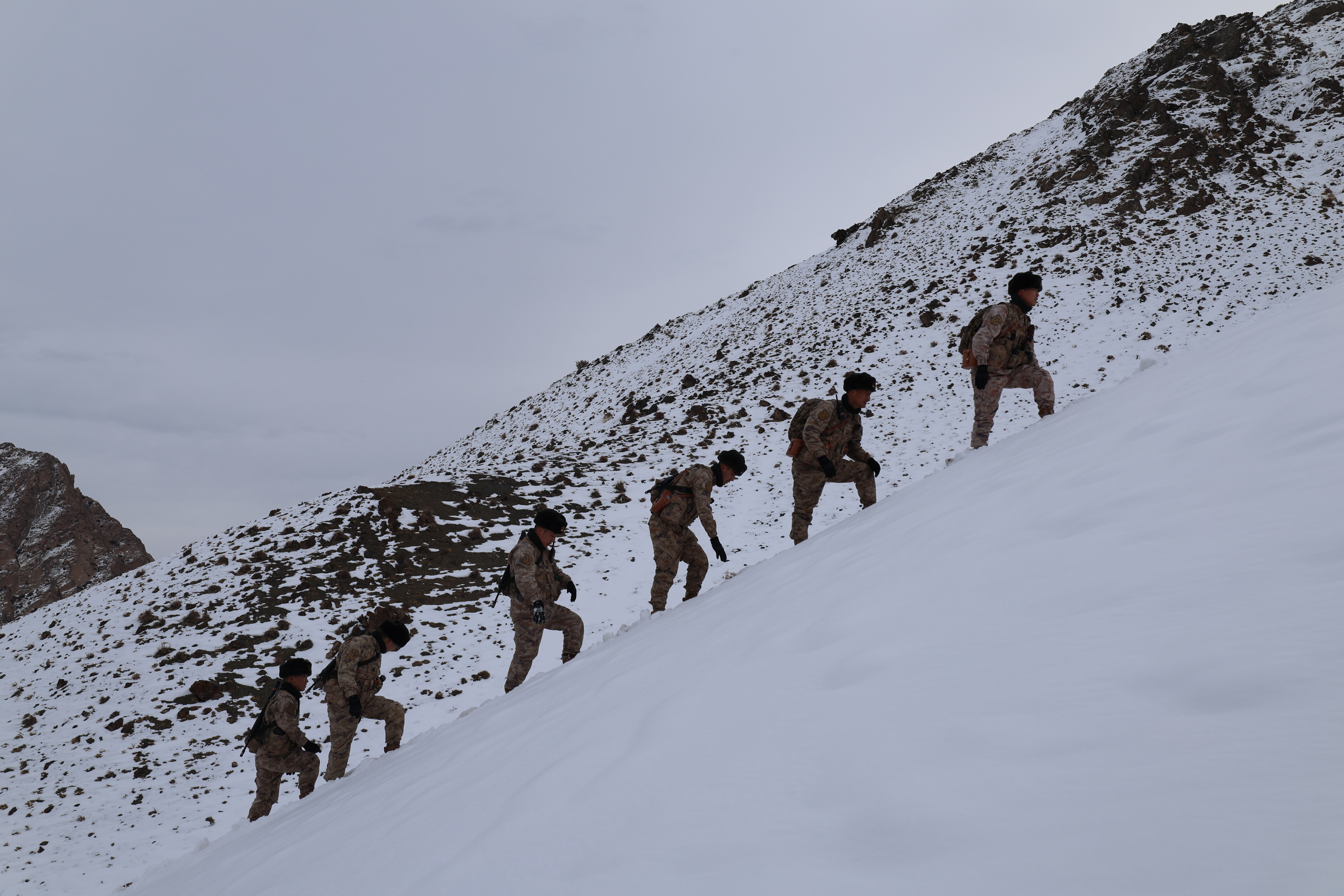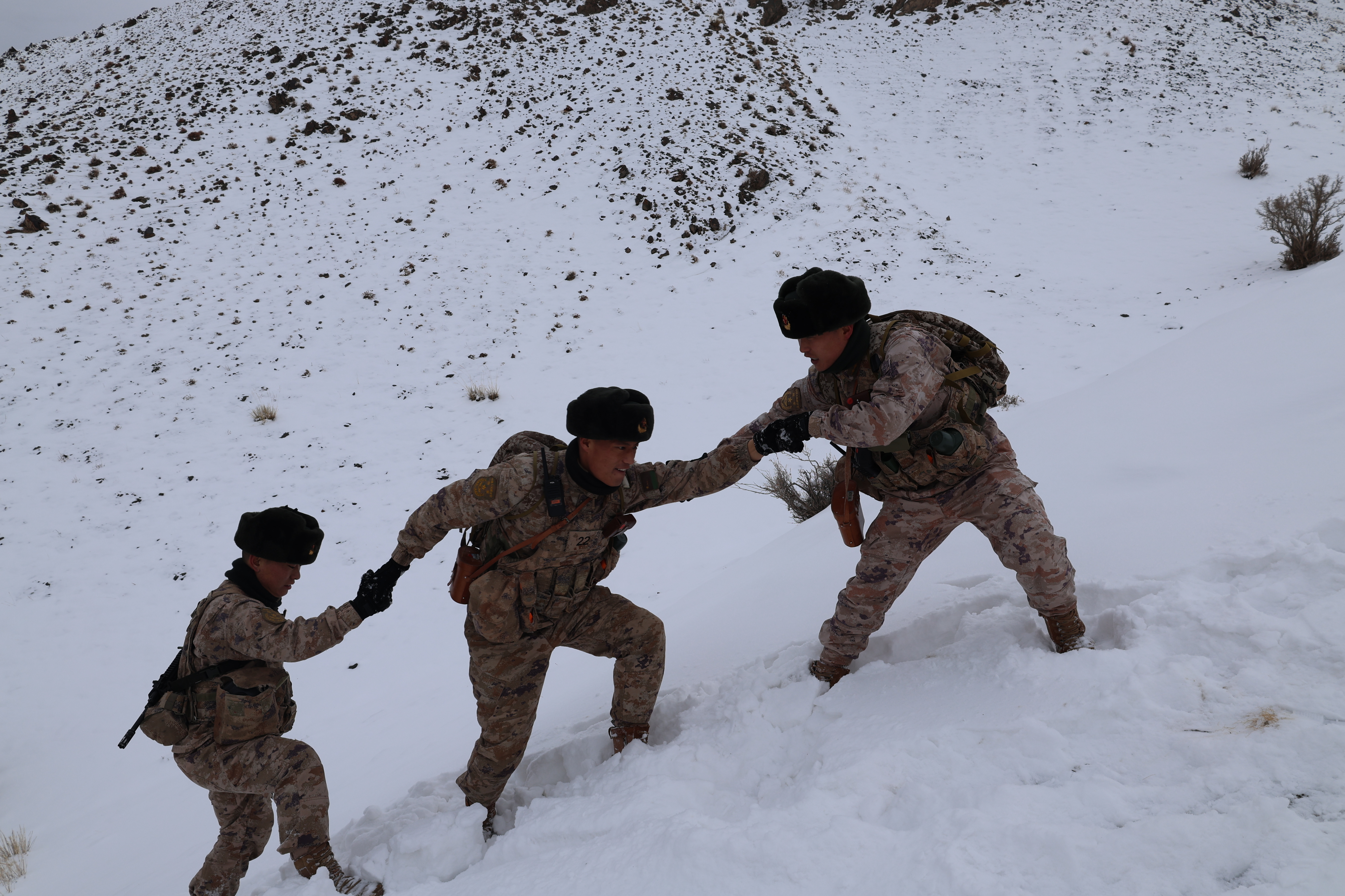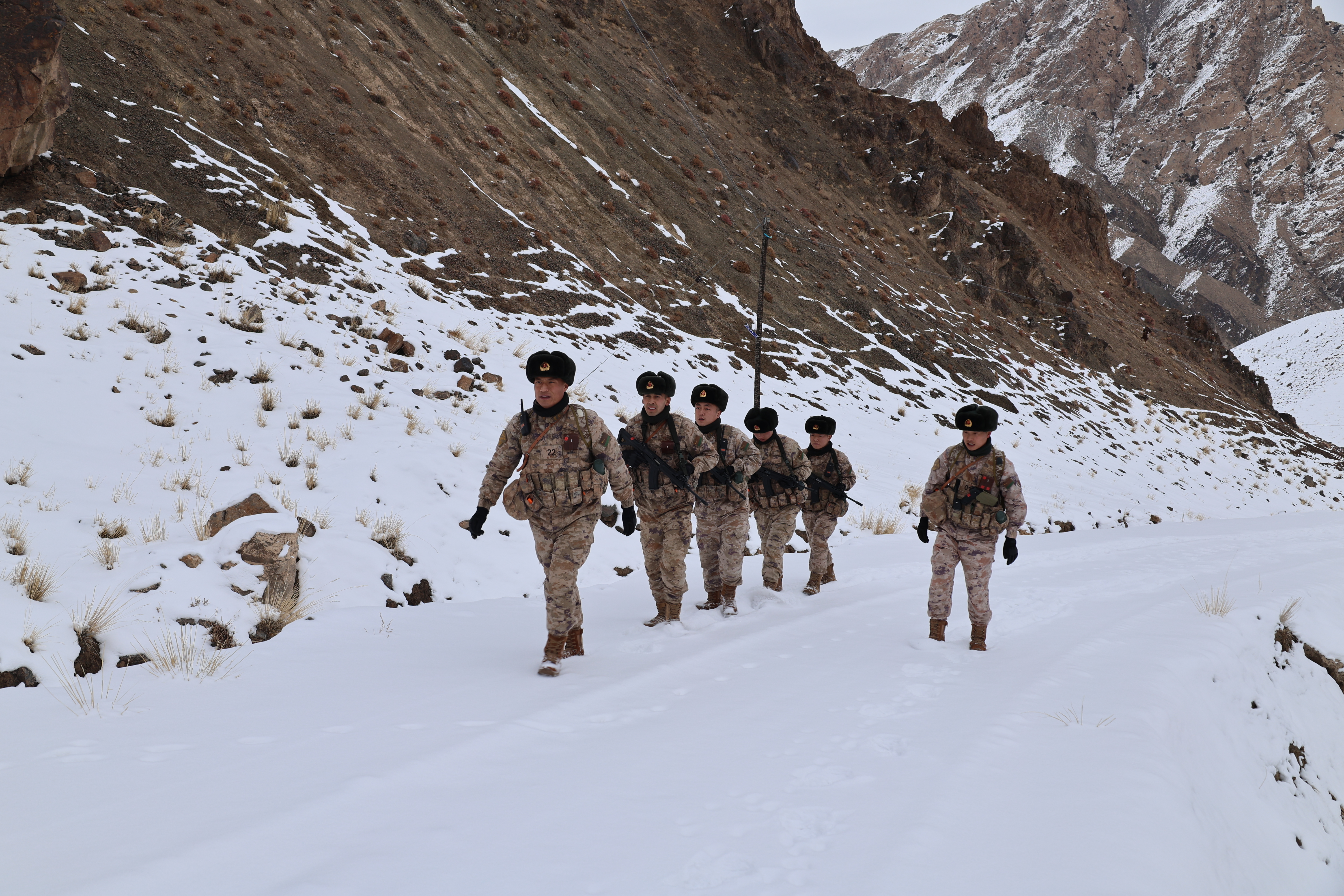 帕米尔高原,寒风凛冽,最低气温达到零下35摄氏度。元旦期间,驻守在祖国最西端,有着“西陲第一哨”之称的新疆军区某边防团斯姆哈纳边防连6名巡逻官兵,顶寒风、抗缺氧,翻雪山、过达坂,前往海拔3929米的某重要山口进行新年首次武装巡逻,确保边境安全稳定。