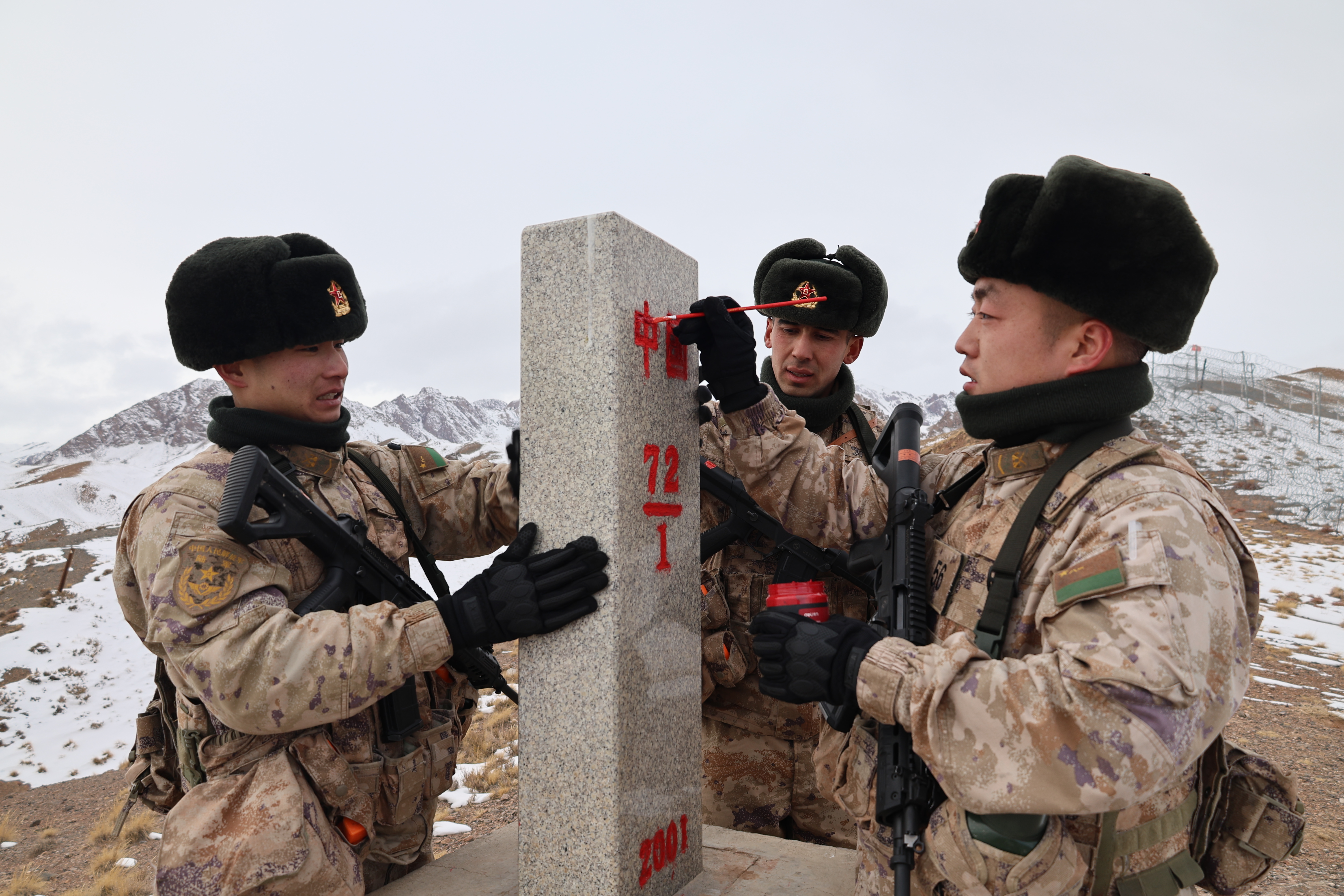 西陲第一哨:祖国最西端边防官兵踏雪巡逻守家国