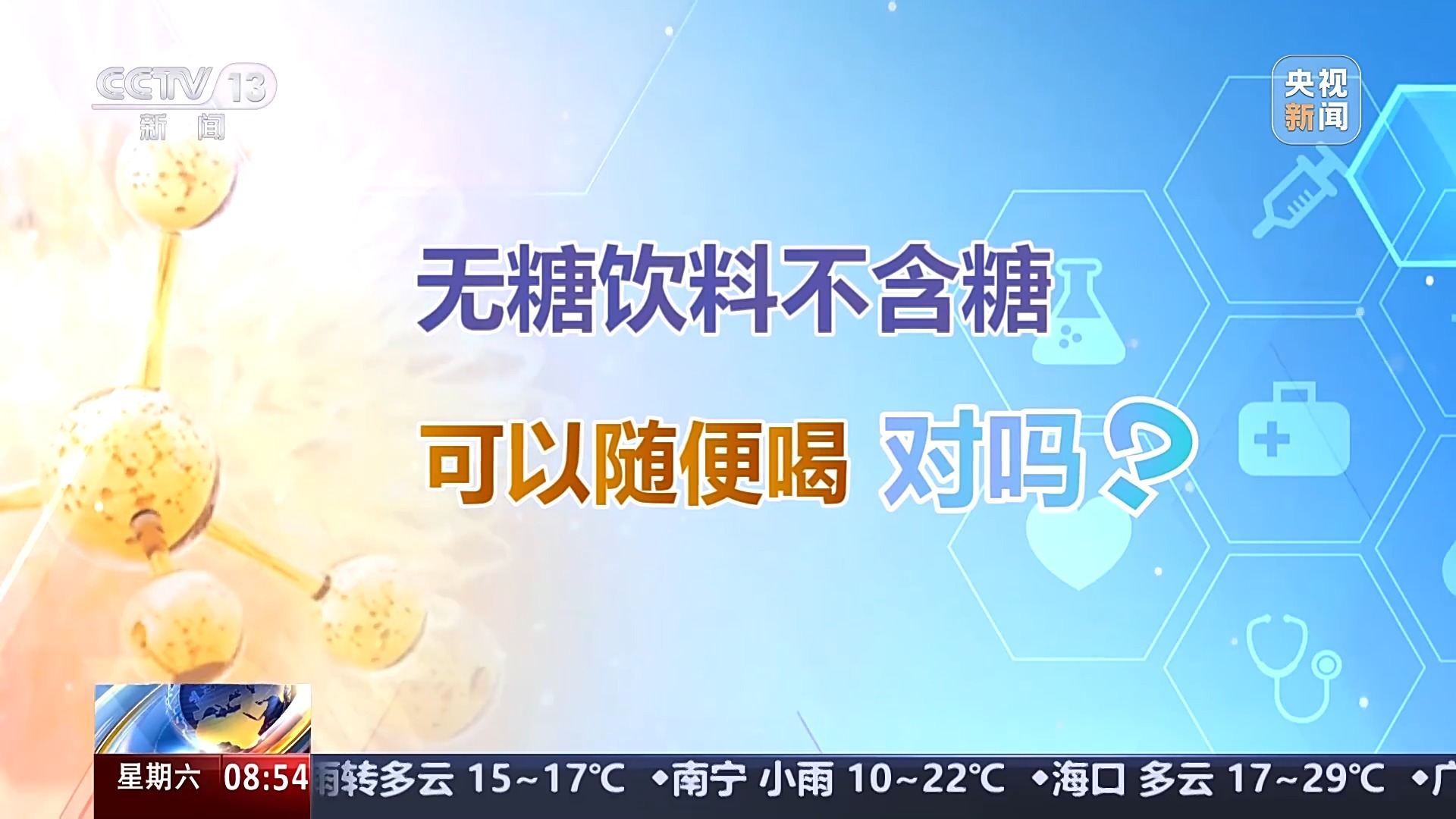 中国营养学会“科学传播百名专家” 国家注册营养师 吴佳:目前的甜味剂也开始有一些负面的研究,有研究说它会影响我们的肠道菌群,我们虽然喝的是无糖的饮料,并不会升高血糖,但是我的大脑在告诉我的身体,我喝的是甜的了,要开始分泌胰岛素了,于是胰岛细胞还是要开始工作,分泌胰岛素,所以说就是胰岛素欺骗,长期来看它并不能够起到控制血糖的作用,也会对健康有一定的风险。不要以为加了甜味剂的约等于白开水了,就可以使劲喝,我觉得这个还是不推荐的。