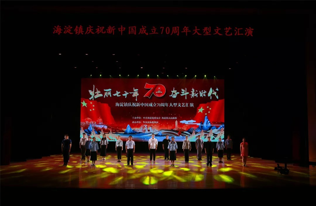 为庆祝新中国成立70周年,落实十九大报告中“坚定文化自信,推动社会主义文化繁荣兴盛”的方针,6月21日晚,海淀镇在民族剧院举办了“壮丽七十年·奋斗新时代”为主题的庆祝新中国成立70周年大型文艺汇演。海淀区委常委、区委办主任高念东,中央民族歌舞团党委副书记丁蔷,中央民族歌舞团副团长王成刚,区委宣传部副部长、区文明办主任杨军昌,区委宣传部副部长、区文化旅游局主任陈静,团区委书记文思君,海淀镇党委书记苏建华,党委副书记、镇长朱海斌等领导班子成员,区委宣传部、区文委、区农委、区团委、镇域非公党建联席会议成员、学区单位以及辖区各二级单位的党员干部和辖区群众共计近1000人观看了演出。海淀镇党委书记苏建华为演出致辞。