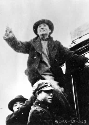 一二·一六天桥集会上黄敬攀着电车向与会群众演讲