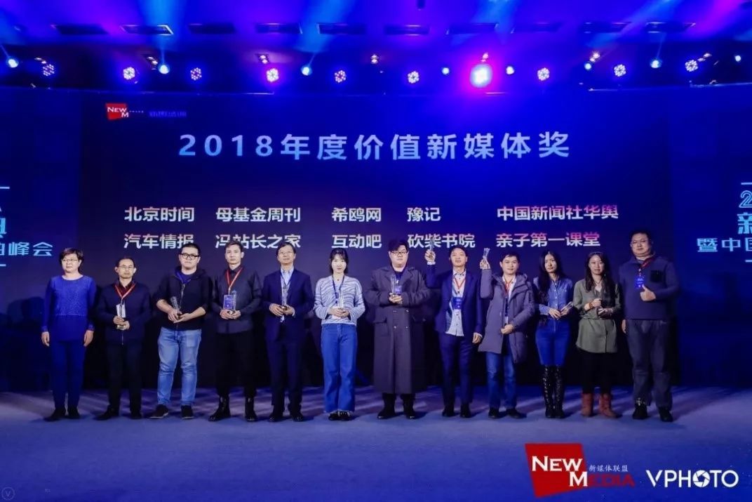 峰会的最后还现场颁发了2018年度最具价值新媒体奖项,北京时间、中国新闻社华舆、砍柴书院等知名新媒体获奖。