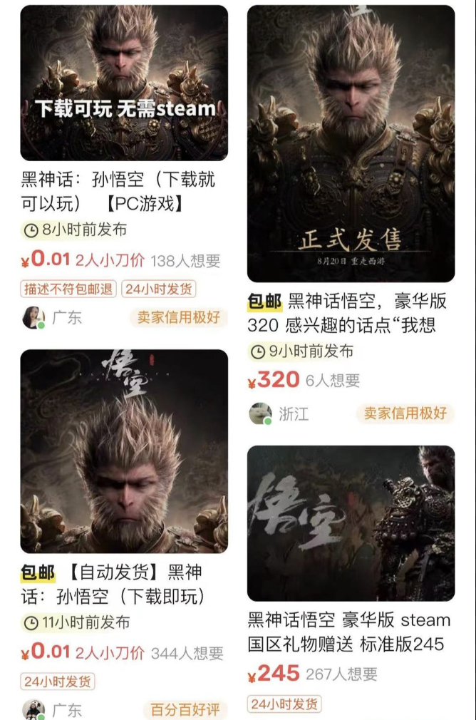 伴随着居高不下的热度,我们不难发现,围绕《黑神话:悟空》的盗版等现象如同游戏中的“妖怪”一样不断涌现。