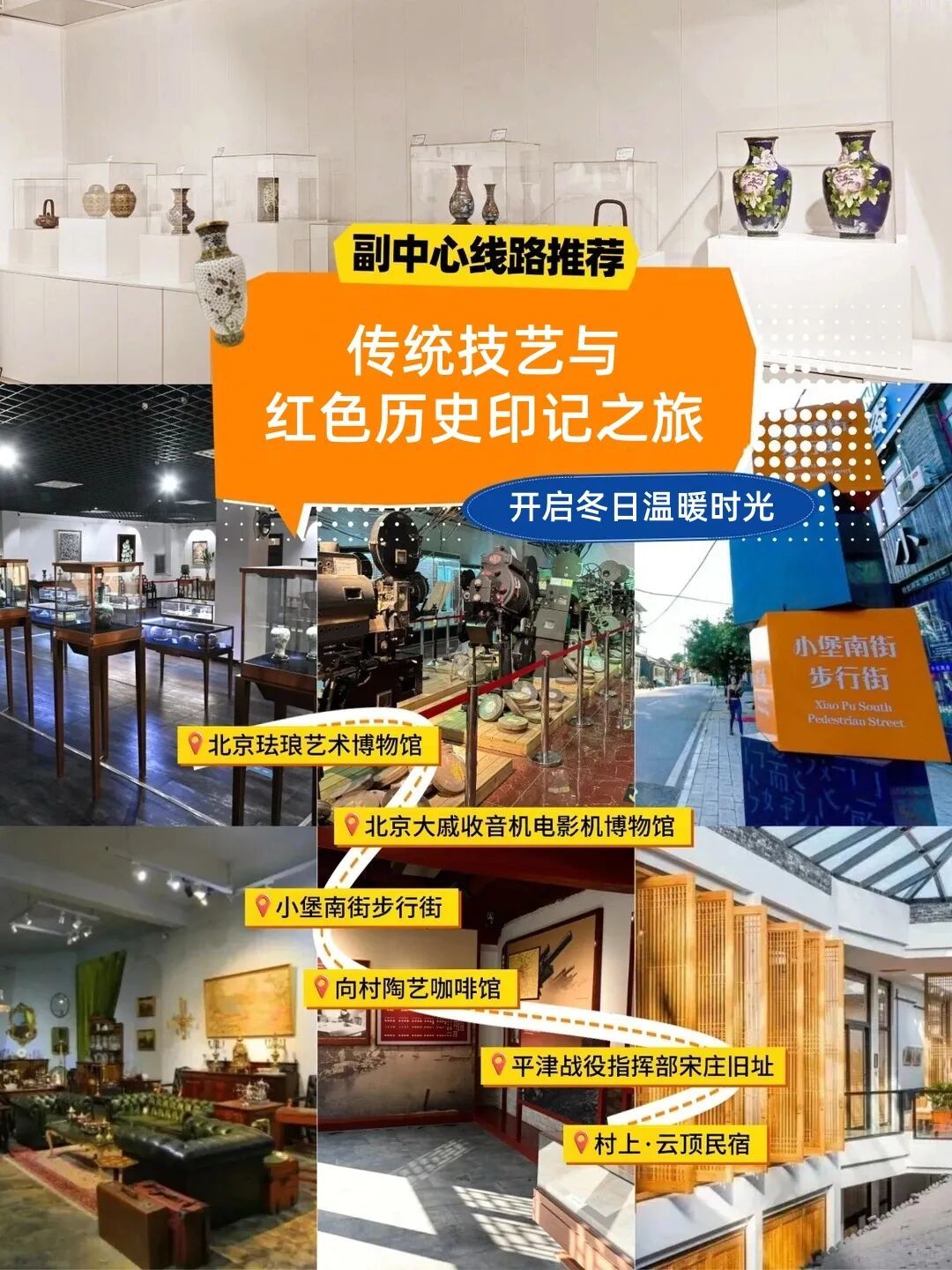核心亮点:在“熊氏珐琅”的釉彩流光中领略极致匠心,于老电影机的齿轮转动间聆听岁月回声。走进平津战役指挥部宋庄旧址,重温激荡人心的红色记忆。这条线路串联起技艺、时光与历史,让孩子在探索中完成一次深度的文化传承与爱国教育。