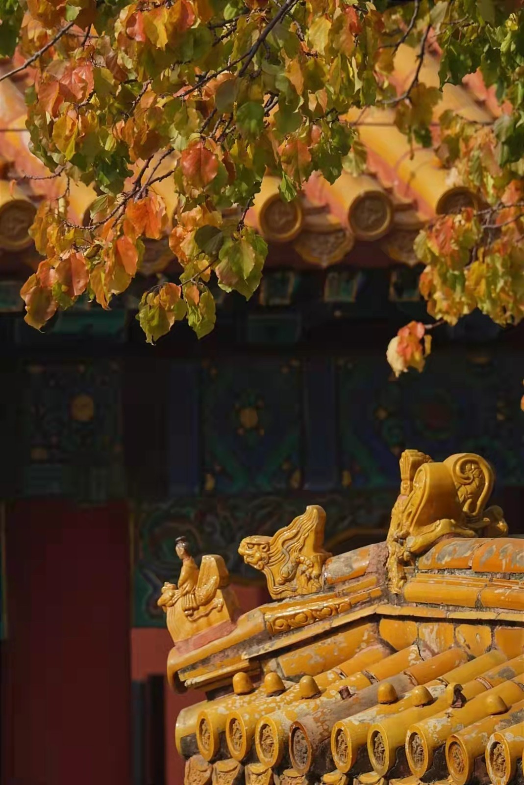 晚秋,红墙黄瓦下的紫禁城坤宁宫,彩叶尚未退场,华彩如故。斗拱飞檐,树影红墙间,似乎还能依稀窥见尘封的过往与动人的故事。