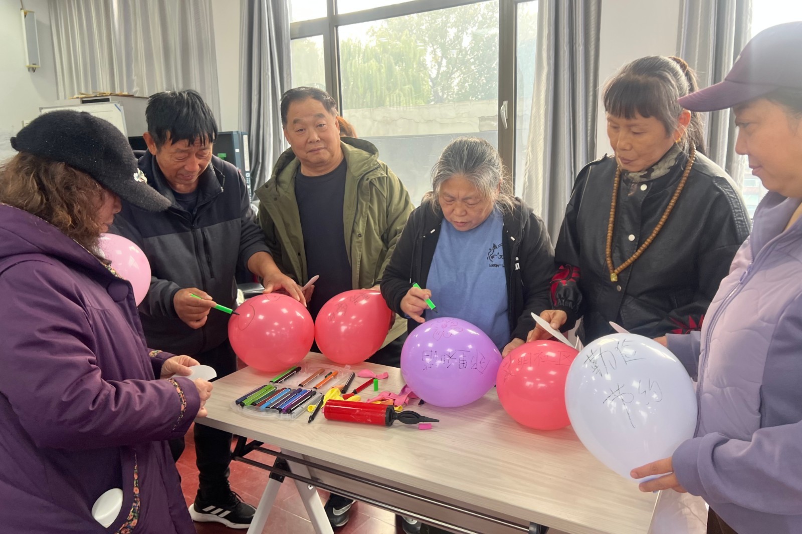 “我要写‘婚事简办,省钱又省心’”“我来写‘文明祭扫,绿色缅怀’”新风气球绘环节的桌子上,摆满了五颜六色的气球、马克笔和展板——参与者先挑选空白气球,在社工的引导下,认真写下“婚事简办”“丧事简办”“文明风尚”等新习俗标语,再将写好的气球粘贴到主题展板上,组成一幅“文明新风墙。只要完成1条文明标语的书写与粘贴,就能获得第三枚“文明印章”。现场居民们低头专注书写,笔尖落下的不仅是文字,更是对文明新风的认同;一幅幅色彩鲜艳的气球墙,成了活动现场最亮眼的“文明风景线”,大家用笔墨传递对新习俗的支持,让文明理念看得见、记得牢。
