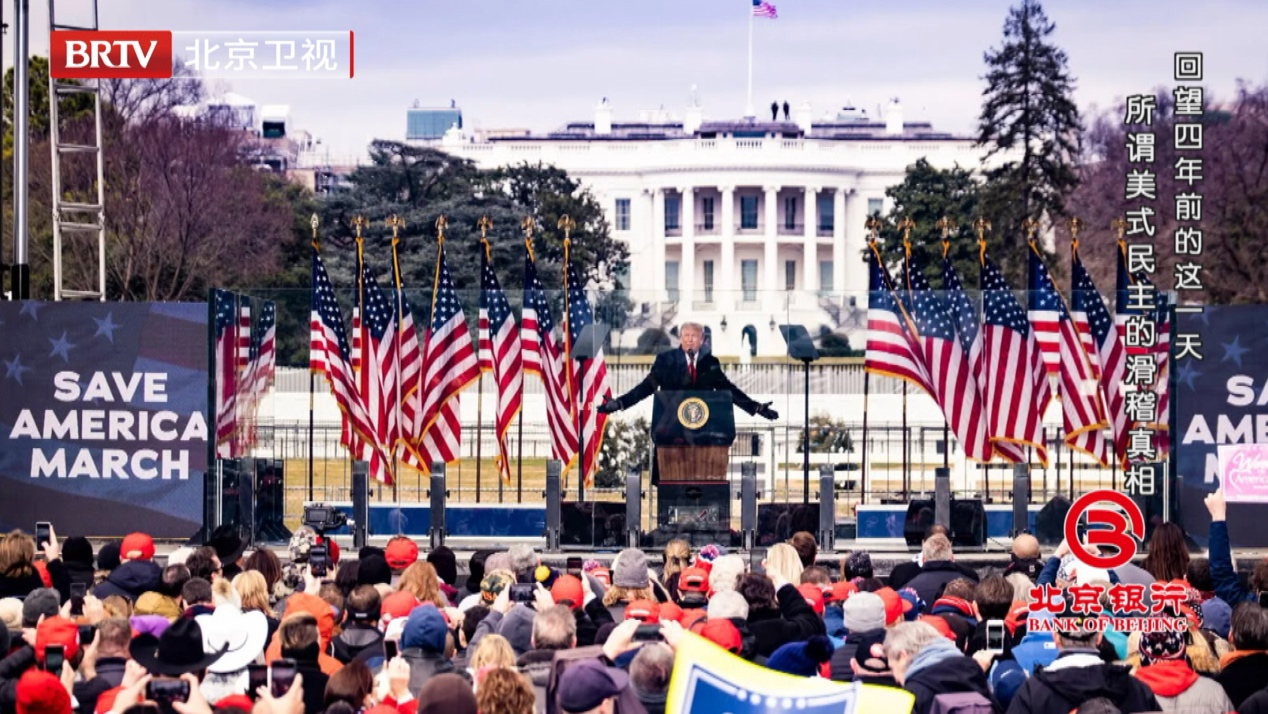 2020年美国总统大选,特朗普败选后拒绝承认结果,声称选举存在舞弊。他的支持者组建了“停止偷窃”组织,并在线下组织抗议活动,反对继续统计选票,甚至煽动暴力。2021年1月6日上午,示威者聚集在距离华盛顿特区国会大厦一英里外的椭圆形草坪。特朗普发表演讲,呼吁支持者“走到国会大厦”,暗示拜登将成为一名“非法总统”。