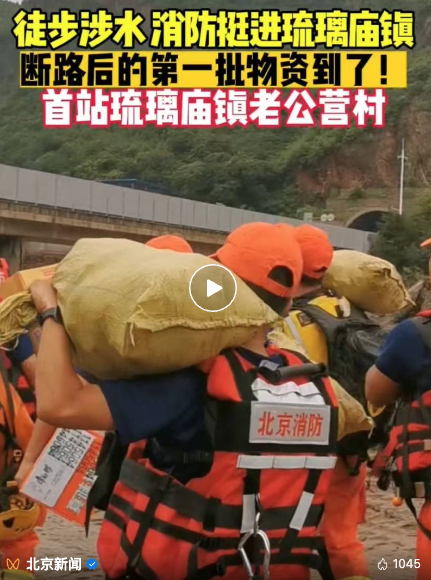 怀柔区琉璃庙镇也因持续强降雨遭受严重灾情,道路基础设施损毁严重。在现场,记者看到前往琉璃庙镇受灾严重村落的进山之路异常艰难。途中,多处道路被山洪完全冲塌,成为绝壁,截断了救援队伍前进的方向。怀柔消防救援力量背着干粮和水挺进老公营村,为灾区送上断路后的第一批物资。