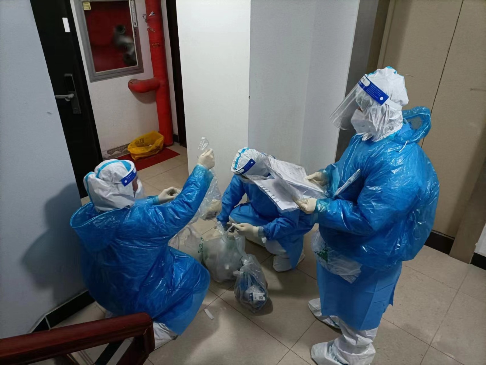 凌晨1时,人员全部集结到位,本次与他们并肩作战的是150余位来自朝富公司、环境集团、CBD公司、水务公司等国资系统的干部职工。支援人员迅速掌握了穿脱防护服与门磁安装的要领。2400余户居民的门磁安装工作连夜完成。
