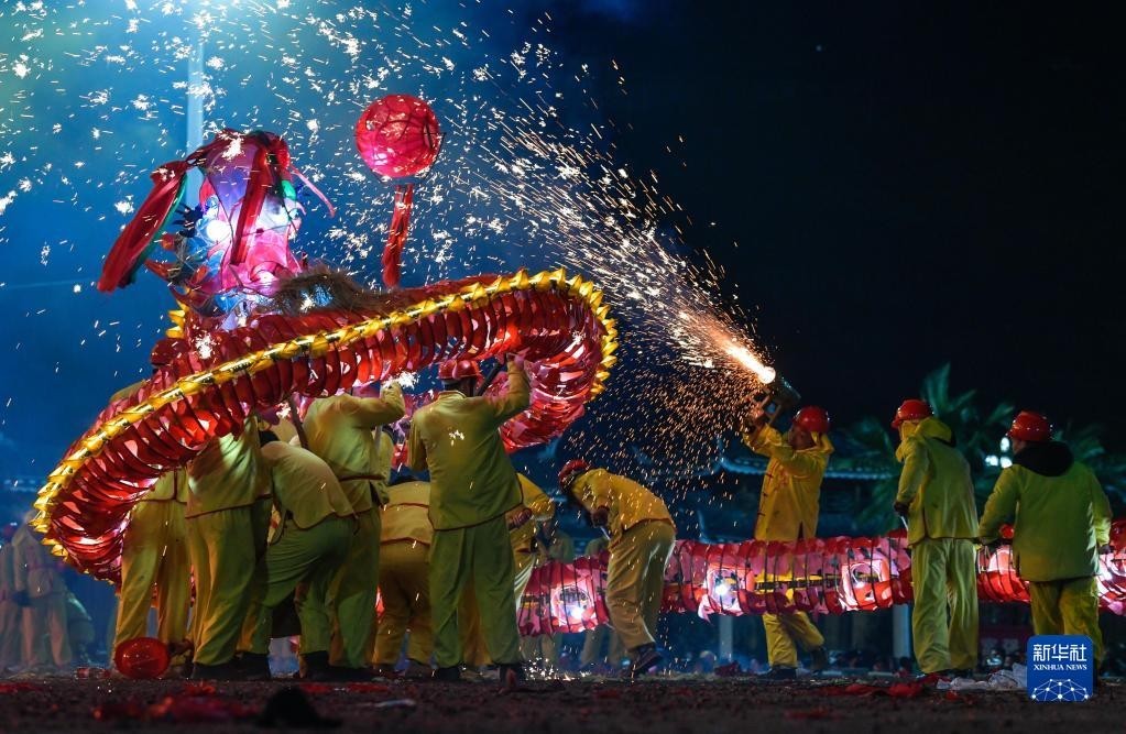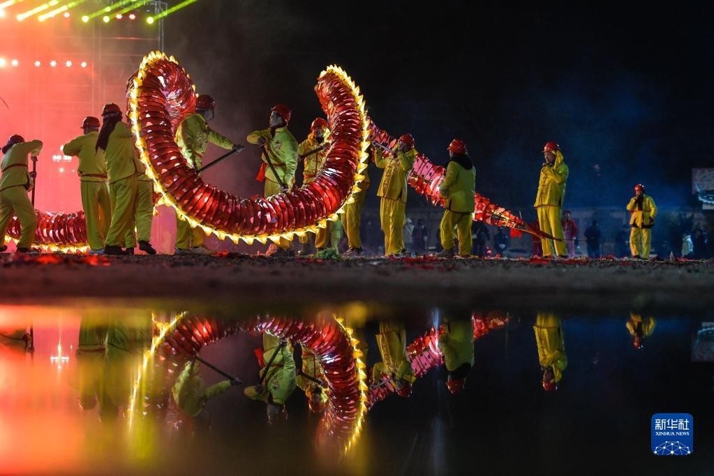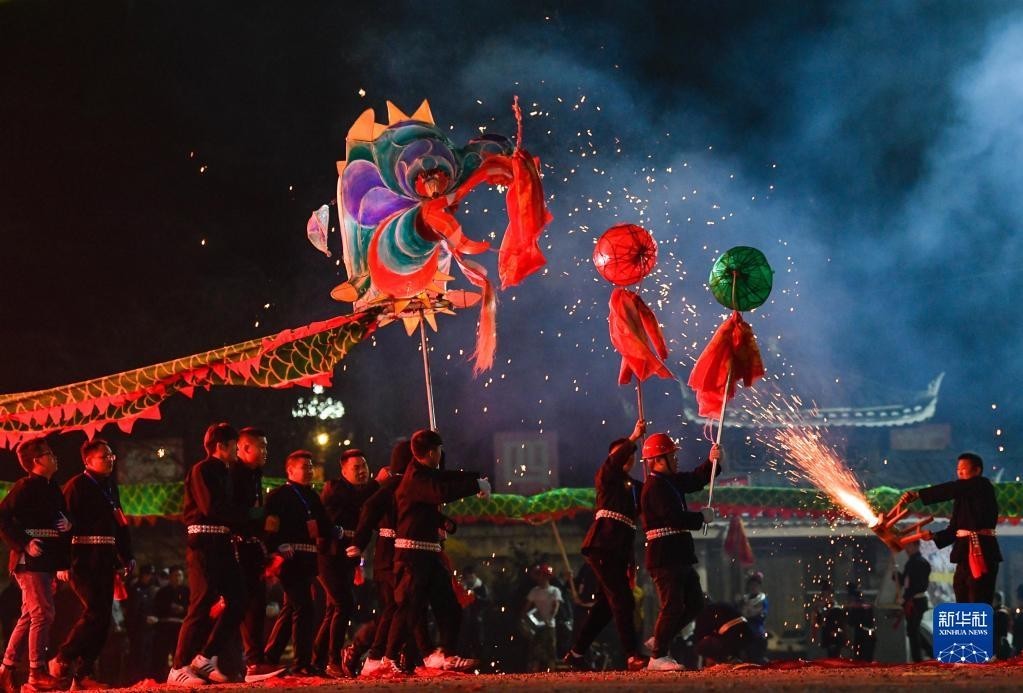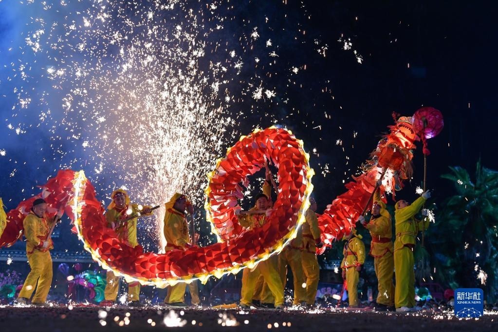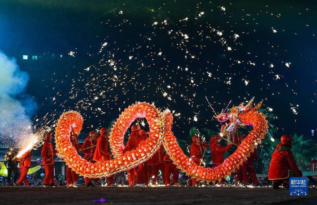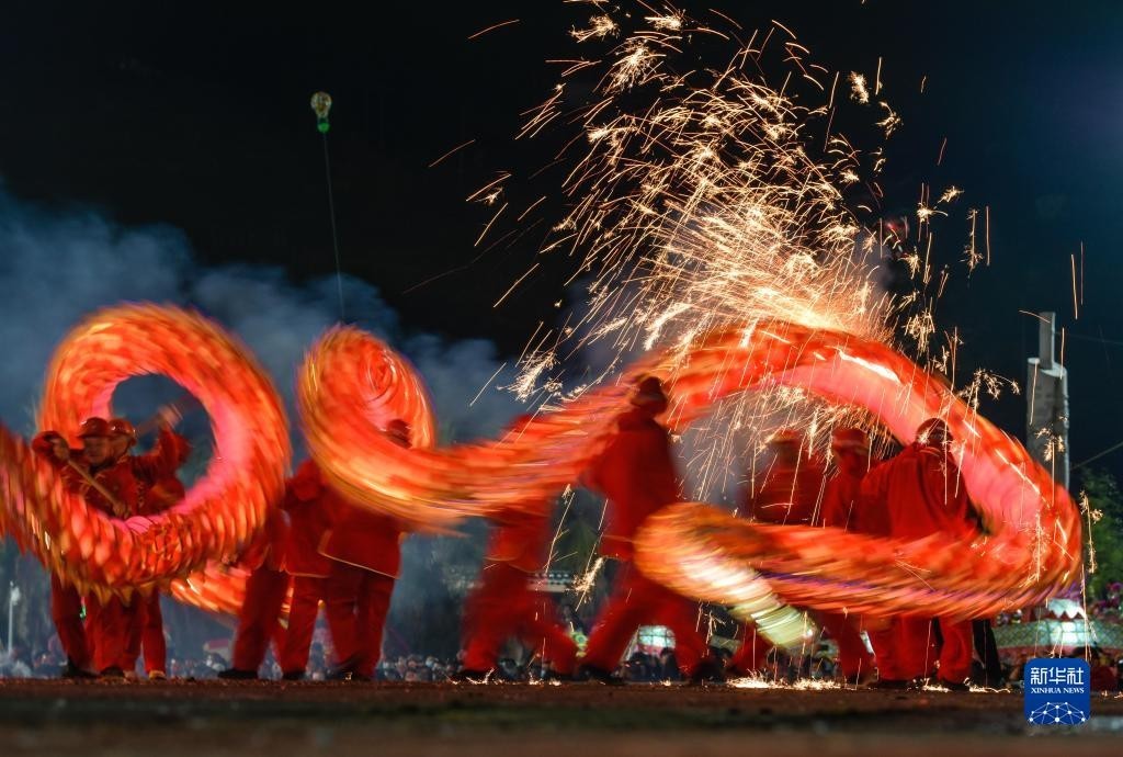 苗族“舞龙嘘花”是当地人用土火药和楠竹等制成嘘花筒向舞动的彩龙喷射所形成的绚丽景象。2021年,苗族“舞龙嘘花”习俗入选国家级非物质文化遗产名录。