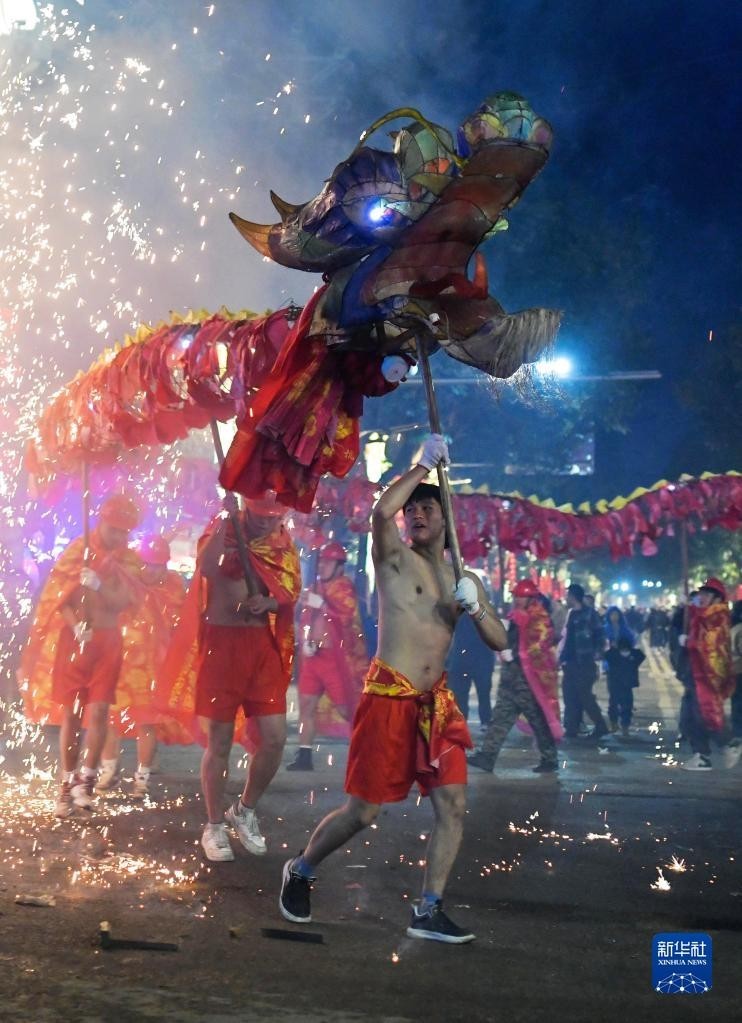 在元宵节到来之际,贵州省黔东南苗族侗族自治州台江县举办2023年苗族“舞龙嘘花”非遗活动,来自该县各苗寨的舞龙队齐聚台江县城,百龙竞技,欢度元宵。