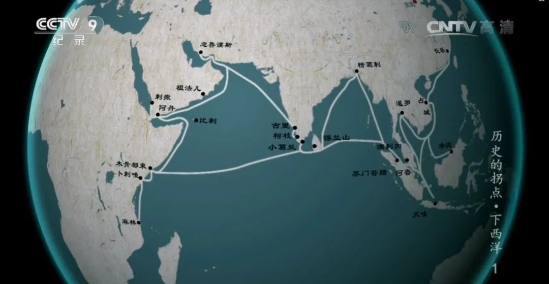 在第五次、第六次航行中,郑和船队从亚丁湾经曼德海峡进入红海,到达红海沿岸的阿丹、剌撒。来源:CCTV纪录片《历史的拐点 下西洋》