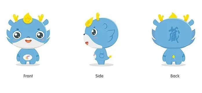 “方方”以中国代表性图腾——“龙”为设计原型,灵感来源于房山著名的景点青龙湖,“黄、蓝、白”三种配色代表房山阳光明媚、蓝天白云,景色优美,生态宜居。方方头冠的火种形状配以象形文字“火”,代表周口店人类文明之火;龙角配以山水纹路,代表房山有山有水,风景优美;手腕纹路取自西周燕都青铜器纹路;身前为房山logo;身后取自云居寺“宝藏”的“藏”字,周身设计均由本土元素取材。