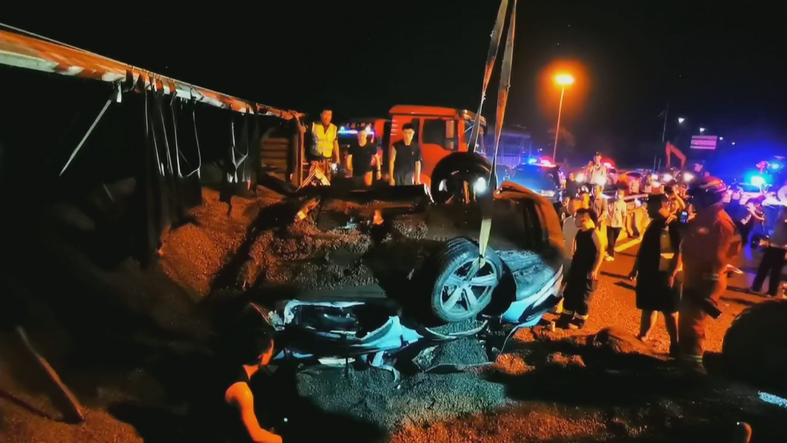 日前,在密云区密关路与外环路交叉口,一辆满载100多吨的砂石半挂车 与一辆小型轿车发生事故。接报警后,密云区消防救援支队、120急救车辆、属地交通队等部门立即赶赴现场,开展救援工作。人员的车内情况如何?一起来看看当时的现场。记者 郑雪婧