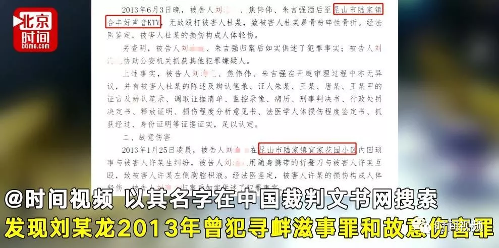 北京时间记者,以其名字在中国裁判文书网搜索,发现刘某龙疑似曾多次入狱。