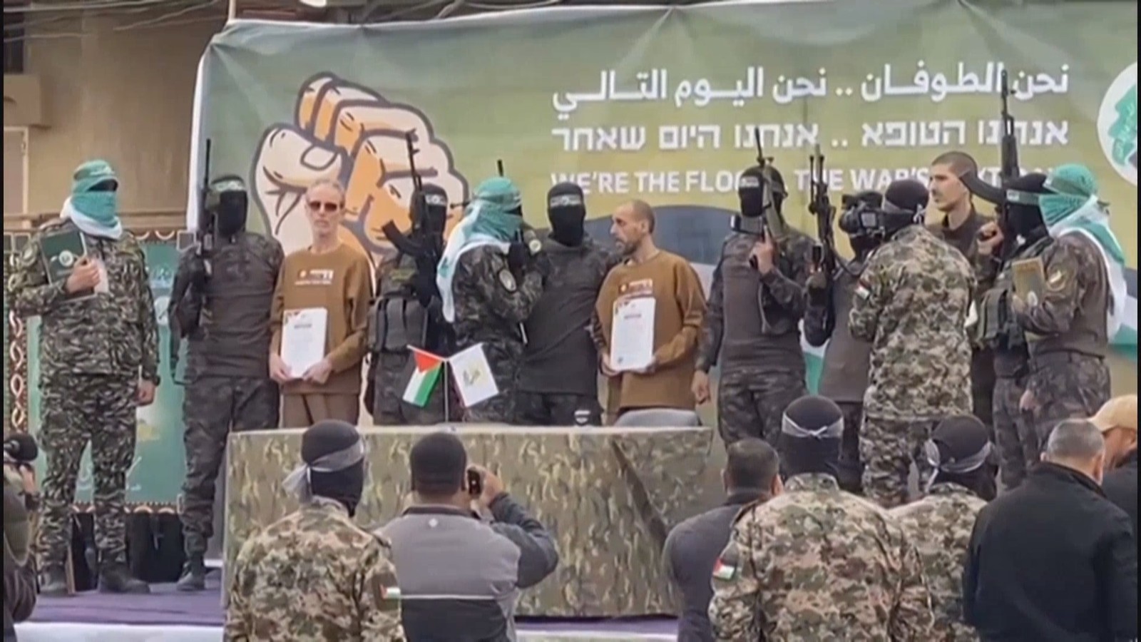 当天上午,哈马斯下属武装派别卡桑旅成员在加沙地带中部代尔拜拉赫的移交现场宣布,已向红十字国际委员会移交3名以色列被扣押人员。