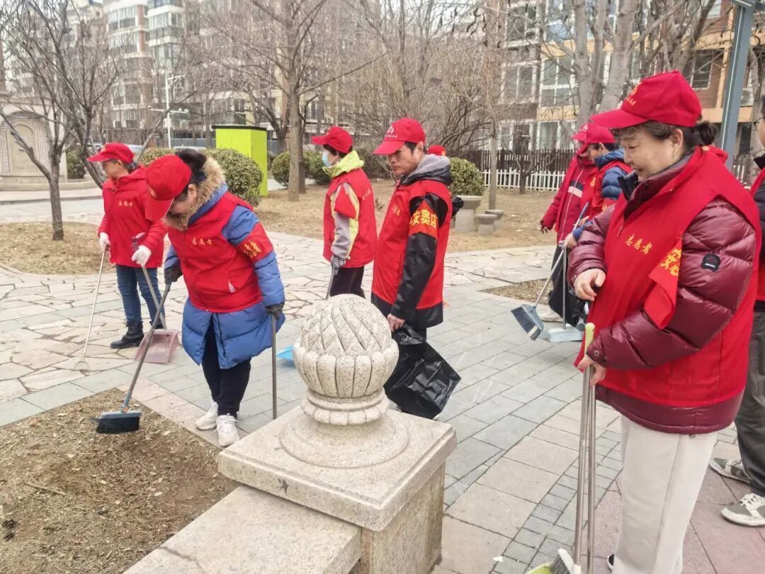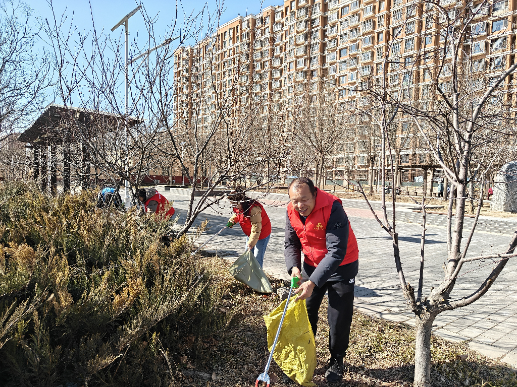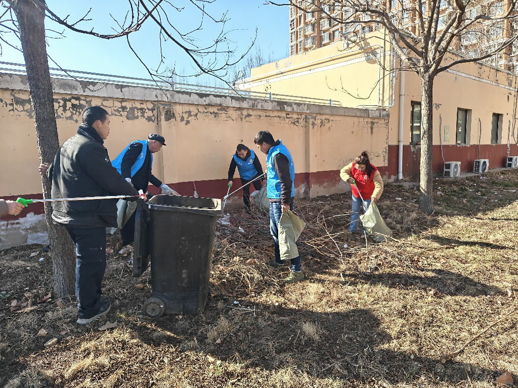 京南嘉园社区新时代文明实践站组织30余名志愿者,清理绿地内白色垃圾、枯枝杂草及卫生死角,同时清扫底商沿街路面、规整杂物、维护社区环境。