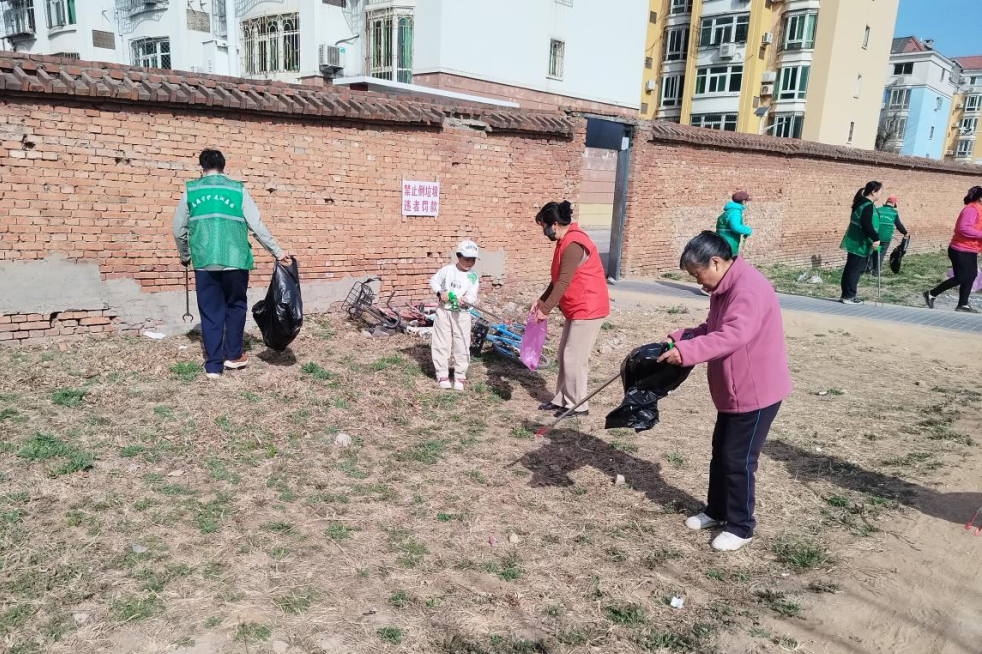 于庄社区新时代文明实践站重点清理社区卫生死角,清理过程中志愿者不怕脏累,积极向居民宣传环保意义,引导居民不乱丢垃圾,带动居民增强环保意识,营造文明有序氛围。