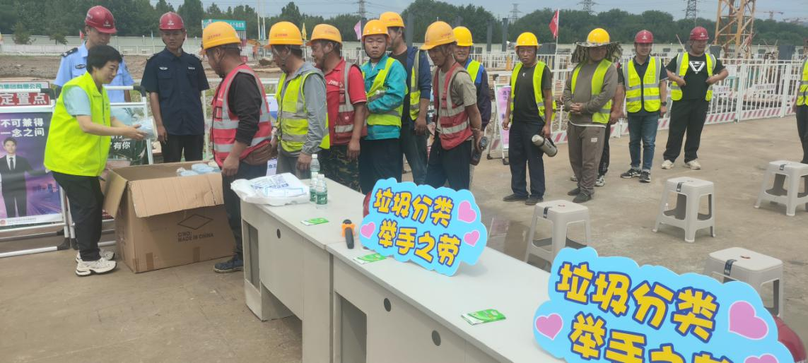 为深入贯彻落实垃圾分类工作要求,进一步提升建筑工地人员垃圾分类意识,推动垃圾分类理念在施工一线落地生根,近日,史各庄街道平安建设办公室走进北京城建北方集团昌平九年一贯制学校项目工地,组织开展垃圾分类主题宣传活动。