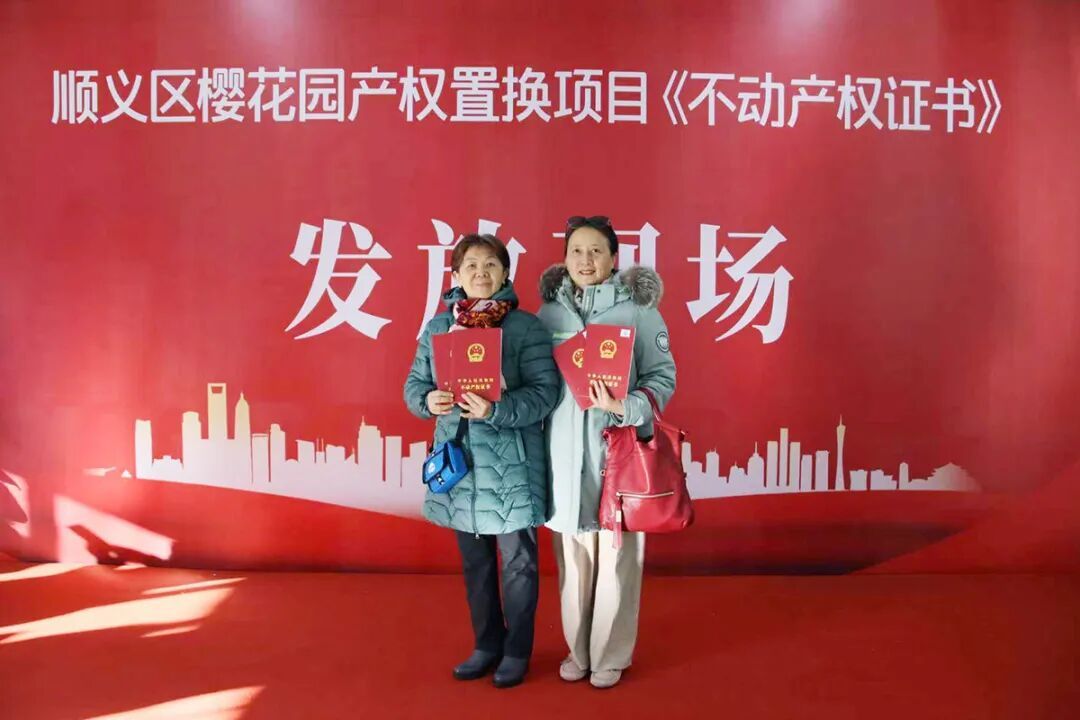 近日,顺义区樱花园产权置换项目不动产权证书集中发放,居民们脸上洋溢着喜悦的笑容。截至目前,樱花园产权置换项目2000余套房屋的产权证书全部发放完毕。
