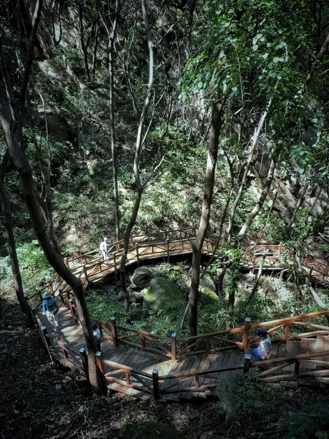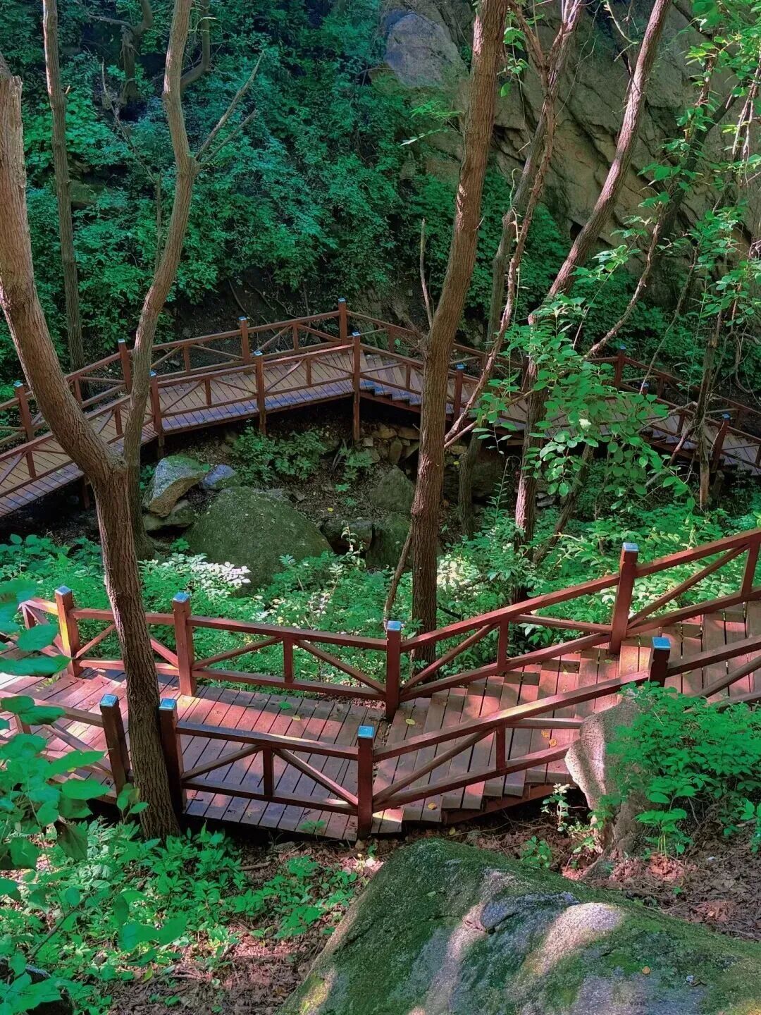 上午野径徒步:8km原始森林栈道,300年古油松环绕,登顶1072米主峰看云海翻涌,像闯仙侠世界!记得带水和防蚊喷雾。