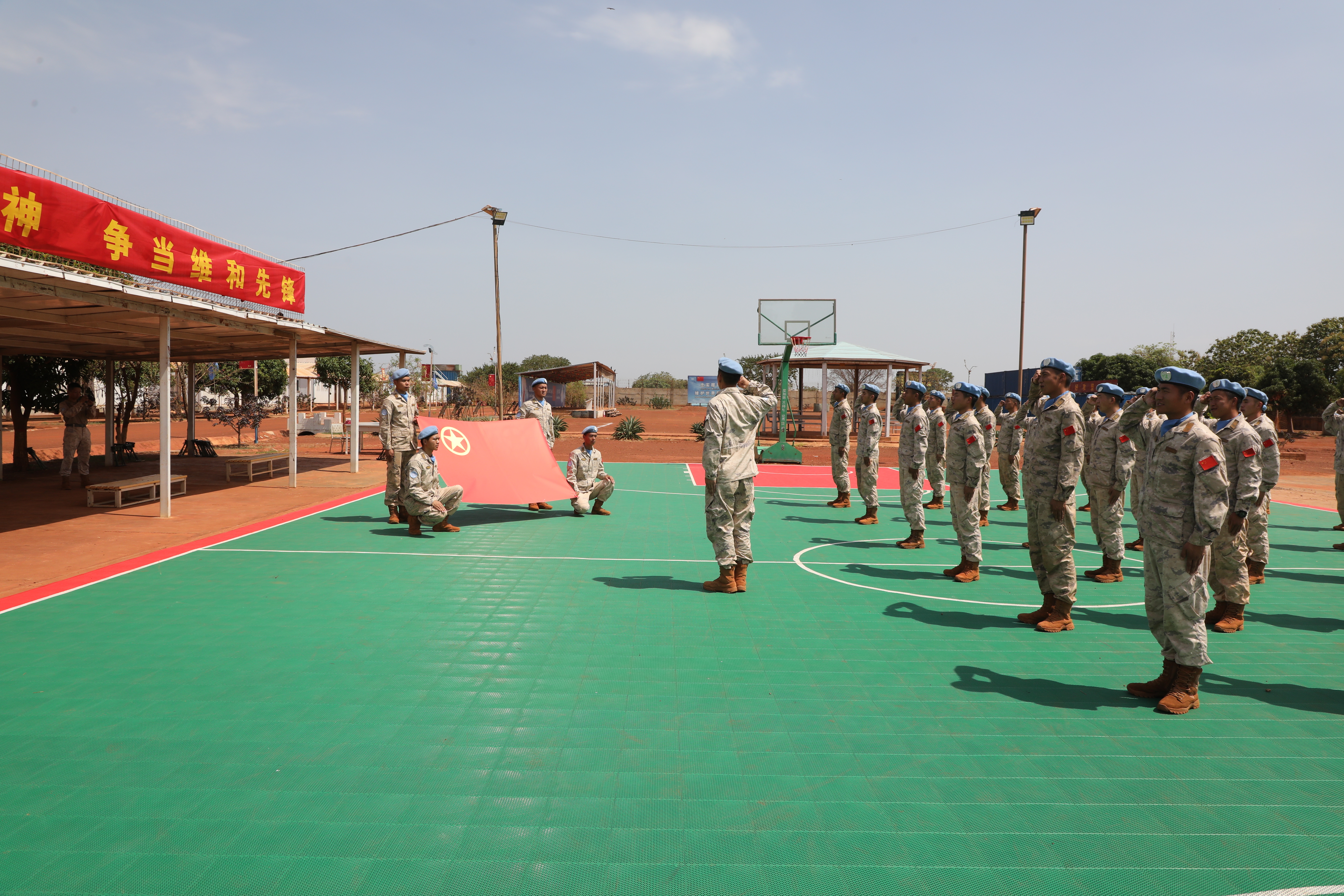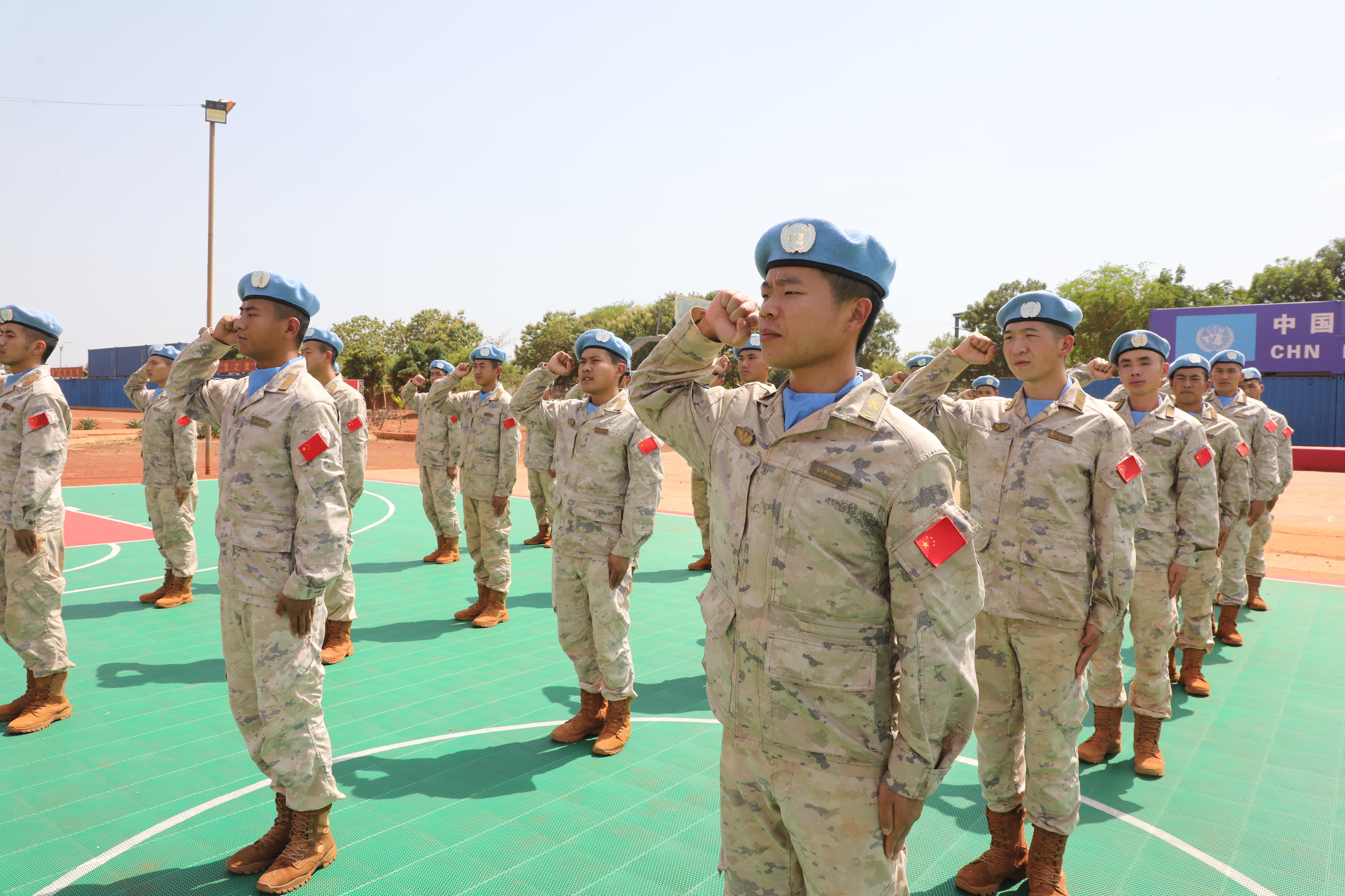 “我志愿加入中国共产主义青年团,坚决拥护中国共产党的领导,遵守团的章程……。”在中国共青团团旗前,40余名维和青年官兵整齐列队,全体队员面向中国共青团团旗庄严宣誓,铿锵誓言回荡在维和营区。并结合聚焦“传承五四精神·争当维和先锋”深化教育实践活动,坚定官兵理想信念,让官兵自觉接受考验。