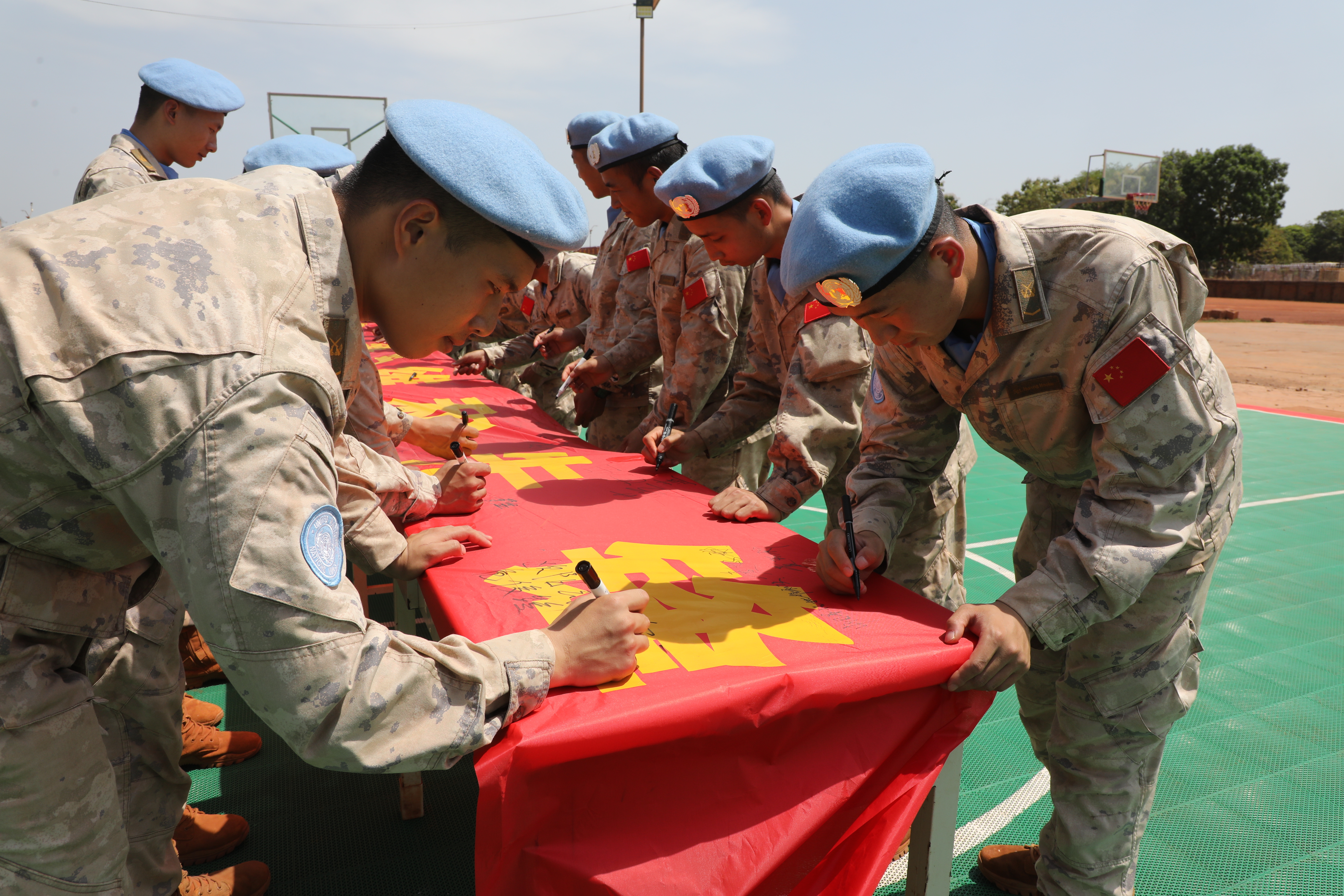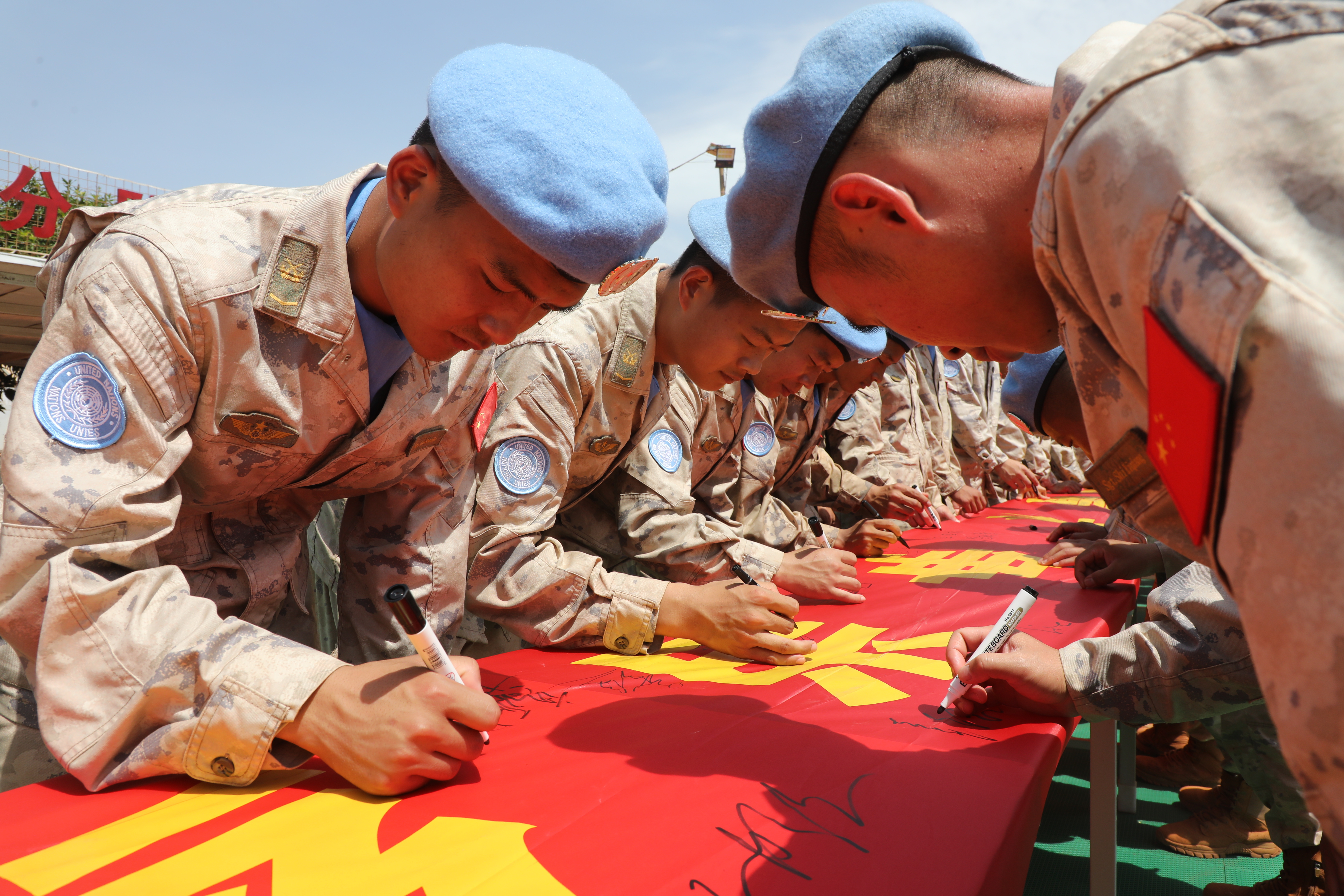 在五四青年节来临之际,中国第15批赴南苏丹(瓦乌)维和工兵分队组织开展“传承五四精神·争当维和先锋”主题系列活动,通过主题教育授课、讨论交流、向团旗宣誓、和集体签名等形式,激励青年官兵在维和战场践行使命担当。