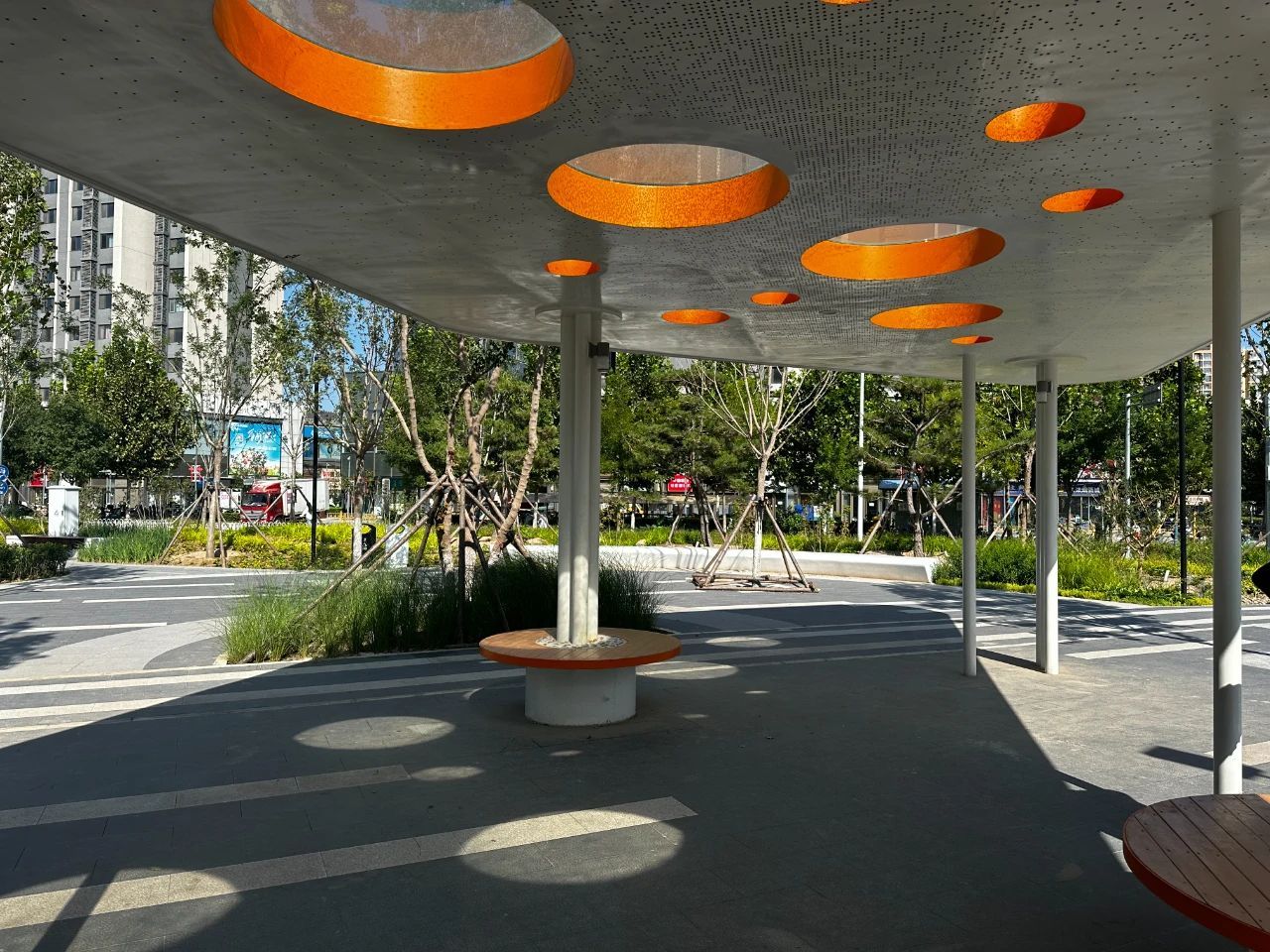 建成后的创享公园距离朱辛庄地铁站直线距离200米,占地面积6280.8平方米,东西长约100米,南北宽60米,根据服务人群的不同特点,设置了不同的场地工程区分,满足各类人群休憩、游园、交流互动的需求。公园辐射周边4个社区的居民,不仅为城市“添彩增色”,更是周围居民的“幸福乐园”。