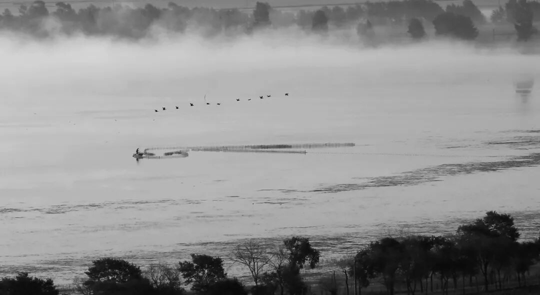 《滦河源》采用黑白影调,雾气的朦胧与水鸟的剪影构成极简构图,既弱化了场景的繁杂,又使“水泽归鸟”的意境更显悠远。