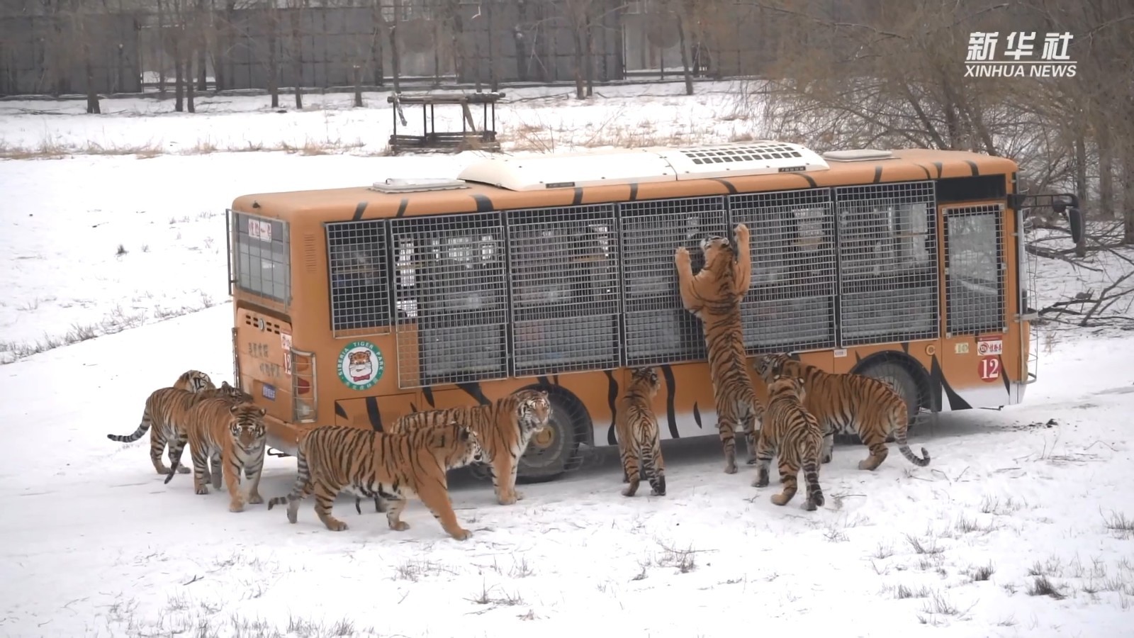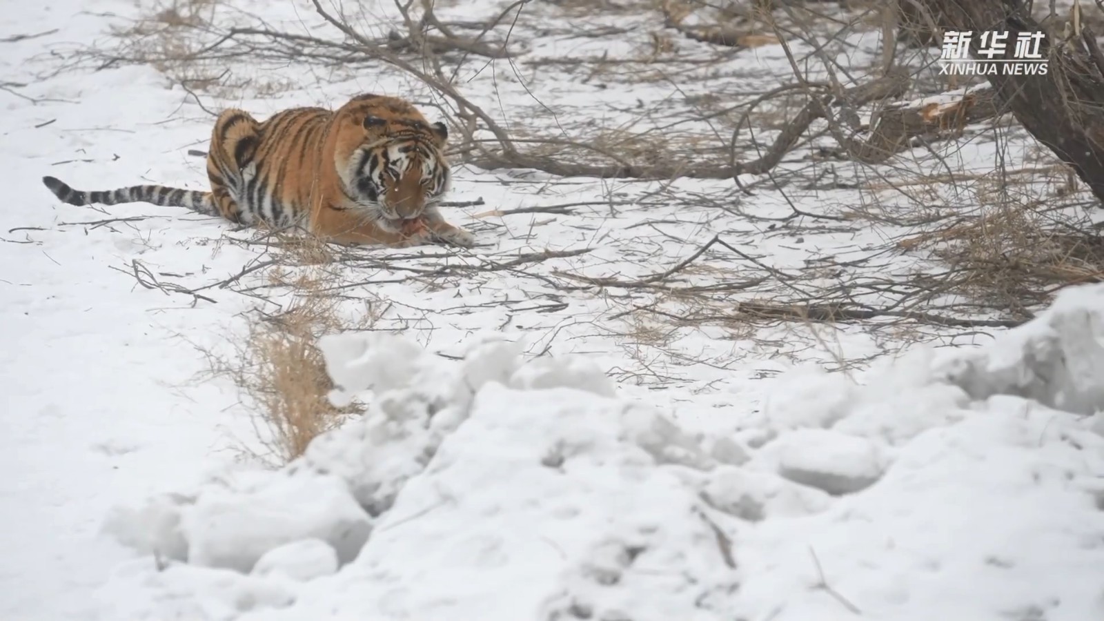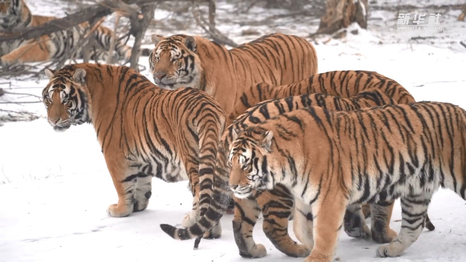 1月15日,黑龙江东北虎林园的散放区,一群矫捷健硕的东北虎争夺地上的肉块,上演了一场飞跃同伴、雪地漂移的“虎口夺食”大戏。网友:这大橘猫站起来原来这么高!