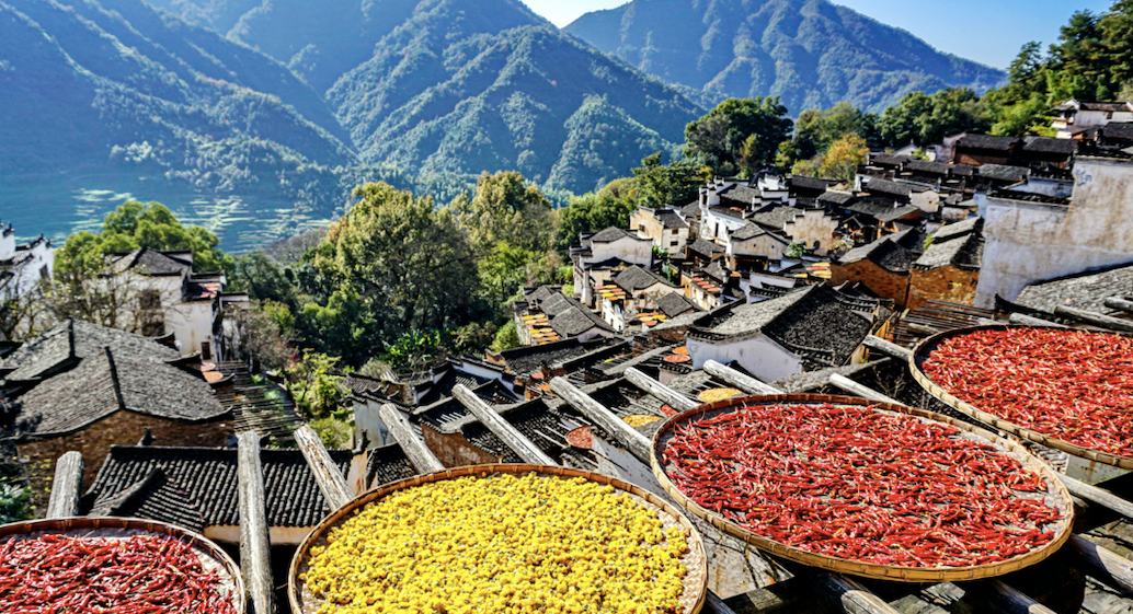 中国最美乡村婺源当然不能错过,篁岭是最具代表性的景点,这里的村庄建于明代中叶,有500多年历史了。周边古树环抱,万亩梯田簇拥,也被称为“梯云人家”。如果说,婺源古村是中国古建筑的大观园,婺源篁岭无疑是一幅雅致动人的秀丽画卷。