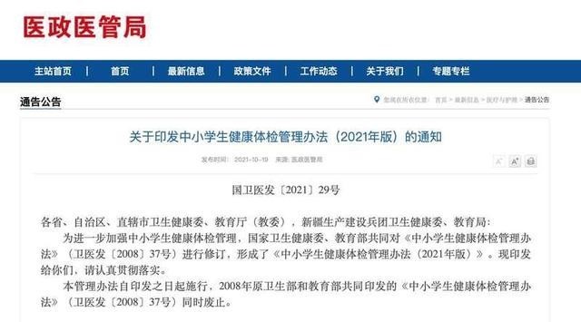 日前,国家卫健委联合教育部发布了《中小学生健康体检管理办法(2021年版)》(以下简称《办法》)。国家卫健委对《办法》的解读中指出,此次修订的《办法》细化了结果反馈与健康档案管理的具体要求,明确提出对出现健康问题的学生建立档案并随访。重点围绕超重、肥胖、营养不良、脊柱弯曲异常、视力不良、龋齿等健康问题开展工作。
