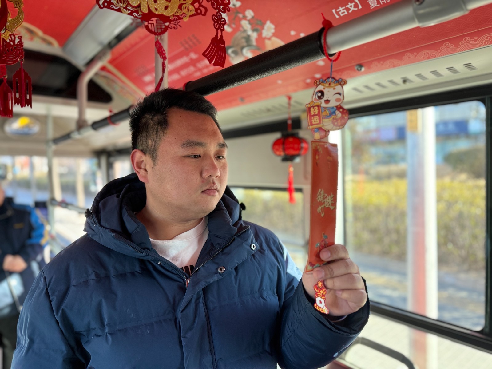 为弘扬中华优秀传统文化,营造喜庆祥和的节日氛围,2月12日一早,袁士军驾驶着520路公交车,“承载”着灯谜从天通苑枢纽站发出,由520路车队举办的“移动灯谜会”在元宵节当日与乘客们共享传统文化盛宴。红灯笼和数十条灯谜悬挂在车厢内,猜灯谜、学文化、品民俗,在欢声笑语中感受中华传统节日的独特魅力。