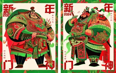 数字艺术门神年画《新年门神》(陈安笛)