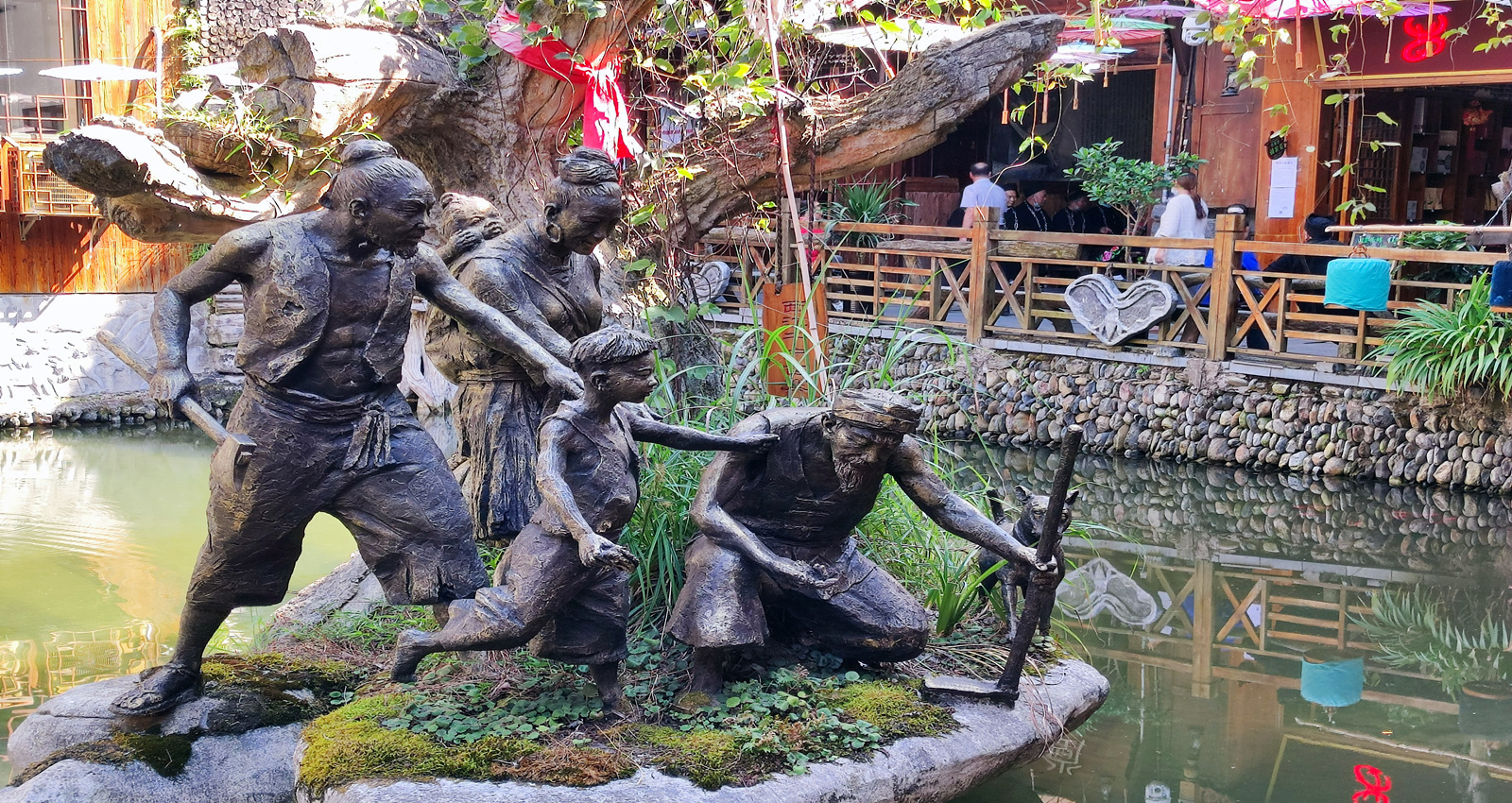西江的起源地,里面有许多非遗的技艺展示,比如蜡染、刺绣、造纸等等,累了的话,可以坐在小池边上,喝上一杯清茶,听上一曲苗族古歌。