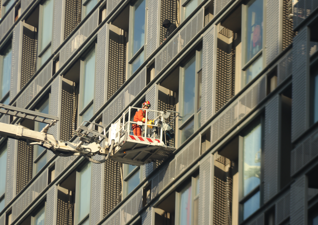 与此同时,在开阔、便于观察的位置设置安全员,实时监测和评估建筑可能存在的轰燃、回燃、倒塌等风险。大楼西北侧,保障分队在安全位置设置器材保障点。终于,在各方人员通力协作下,现场火势被完全扑灭。