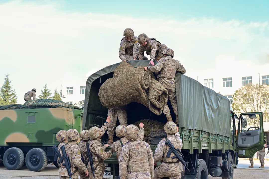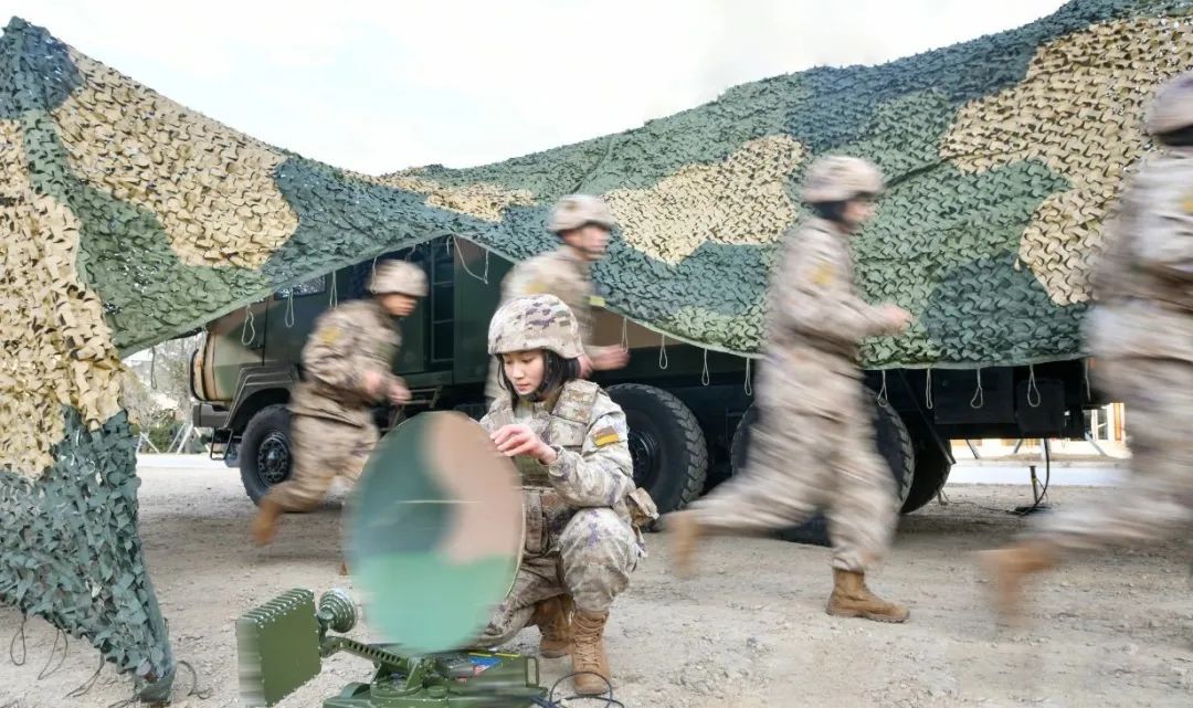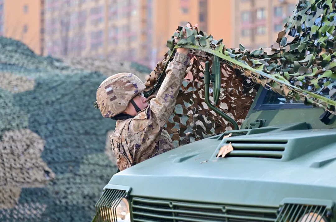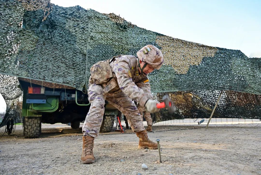 接到指令,官兵闻令而动,奔赴至指定地域后,快速完成装备架设伪装。