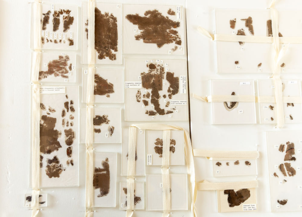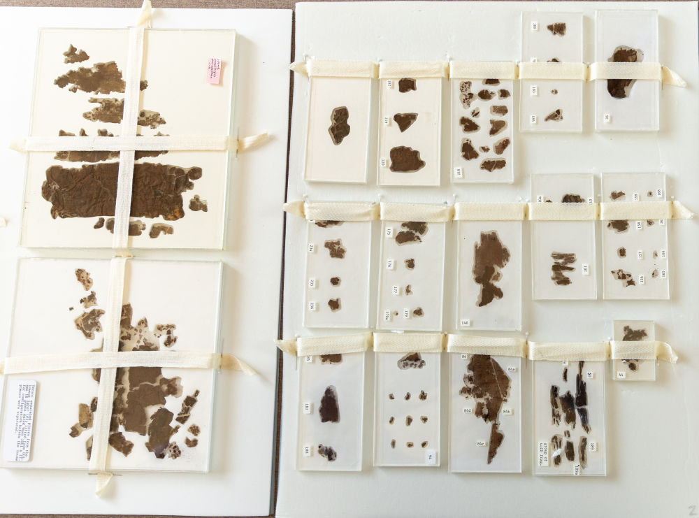 这是5月16日在位于华盛顿的中国驻美国大使馆交接仪式上拍摄的子弹库帛书。新华社记者胡友松摄